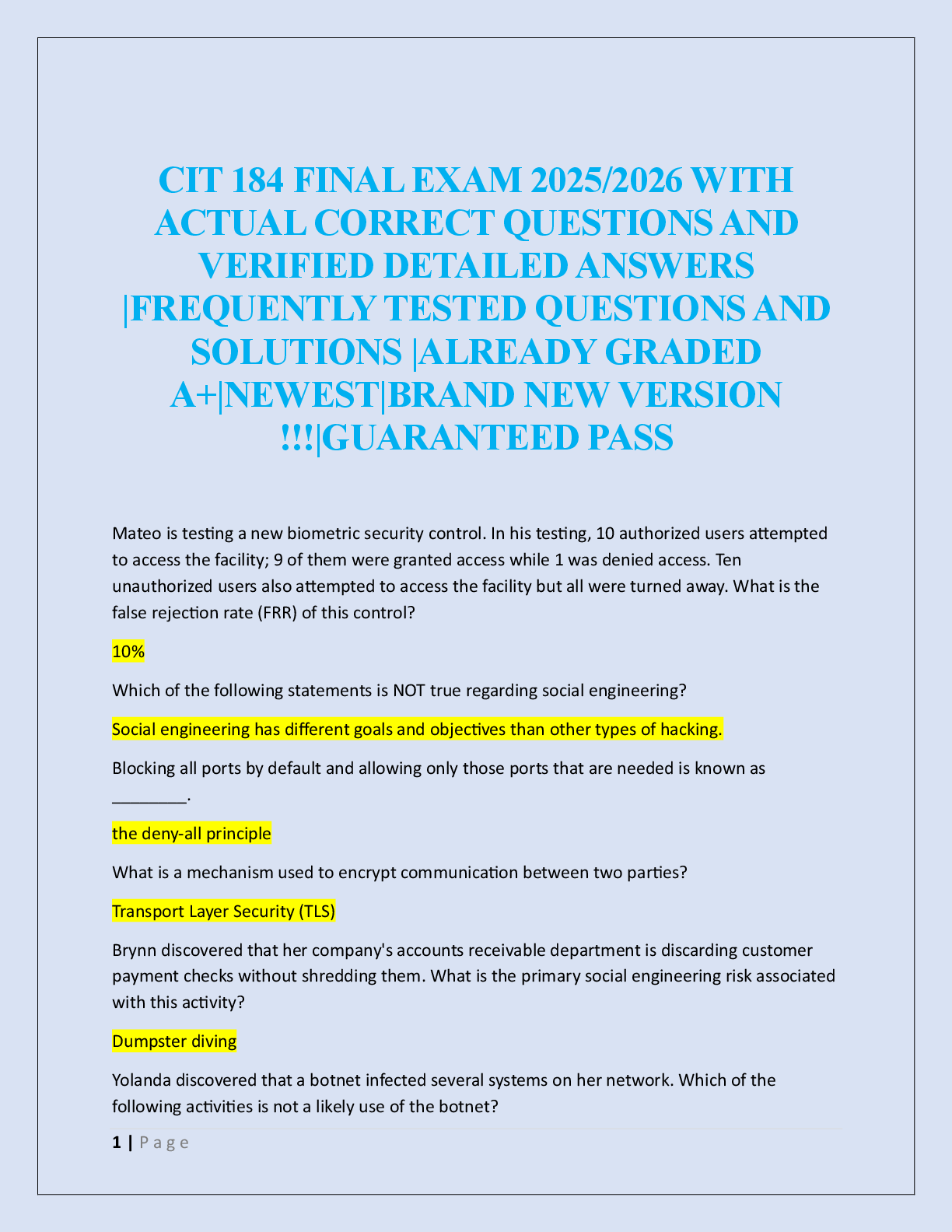Information Technology > EXAM > CIT 184 FINAL EXAM 2025/2026 (All)