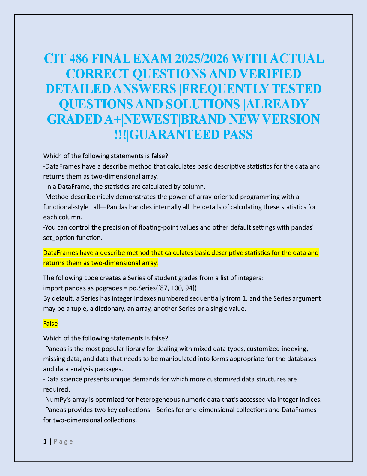 Information Technology > EXAM > CIT 486 FINAL EXAM 2025/2026 (All)