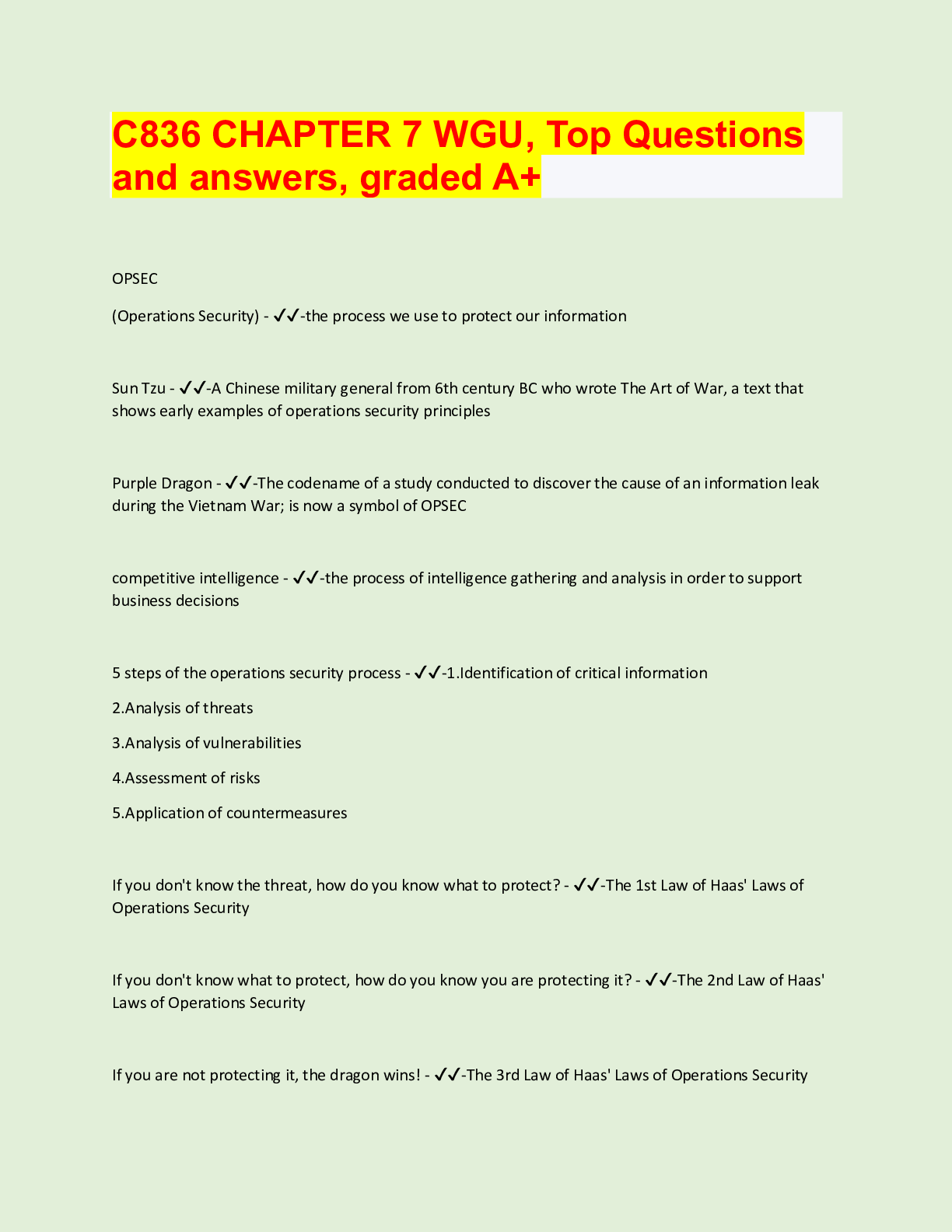 Information Technology > QUESTIONS & ANSWERS > C836 CHAPTER 7 WGU, Top Questions and answers, graded A+ OPSEC (All)