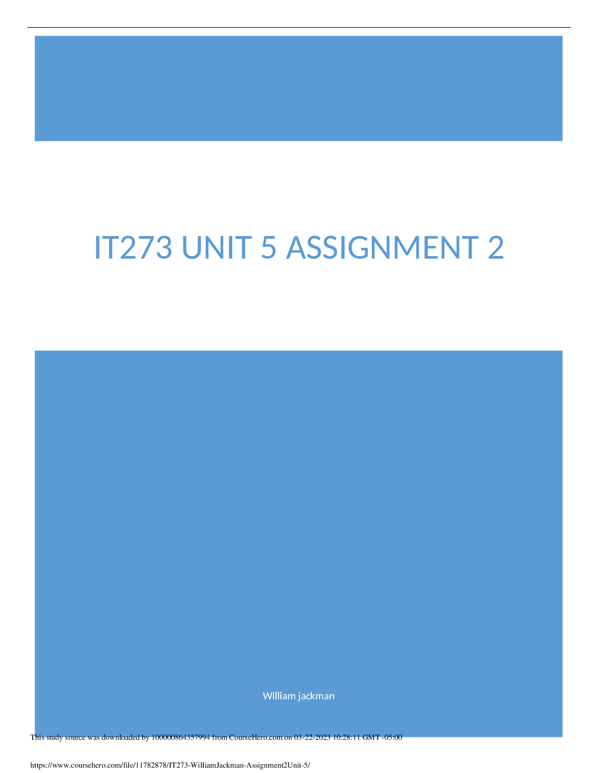 Information Technology > EXAM > IT273_WilliamJackman_Assignment 2 Unit_5 (All)