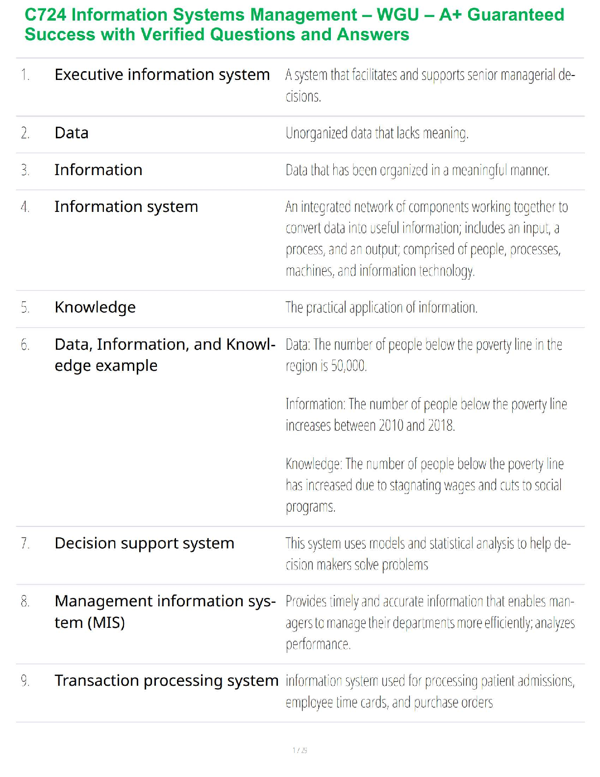 Information Technology > QUESTIONS & ANSWERS > C724 Information Systems Management – WGU – A+ Guaranteed Success with Verified Questions and Answers (All)