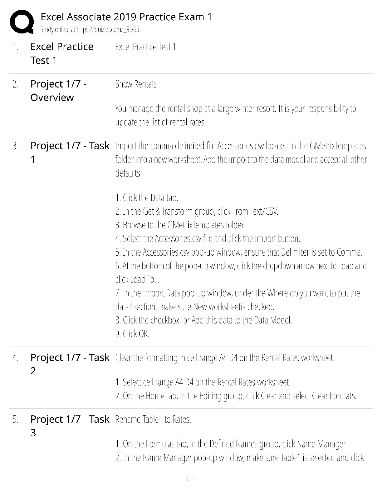 Information Technology > QUESTIONS & ANSWERS > Excel Associate 2019 / Practice Exam 1 & Study Guide / 2025 Update / Score 100% (All)