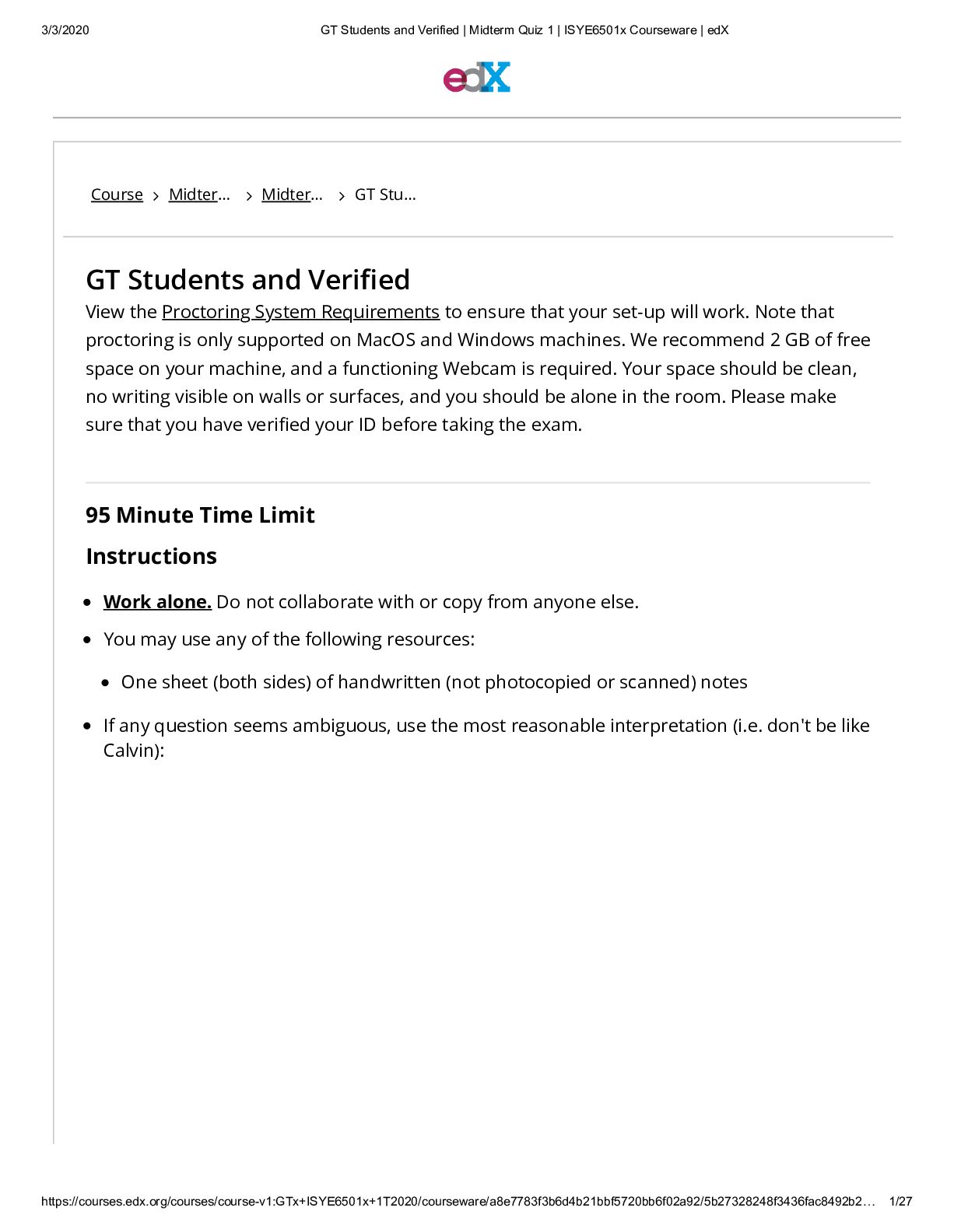 Information Technology > EXAM > Georgia Institute Of Technology - ISYE 6501GT Students and Verified _ Midterm Quiz 1 _ ISYE6501x Courseware _ edX (All)