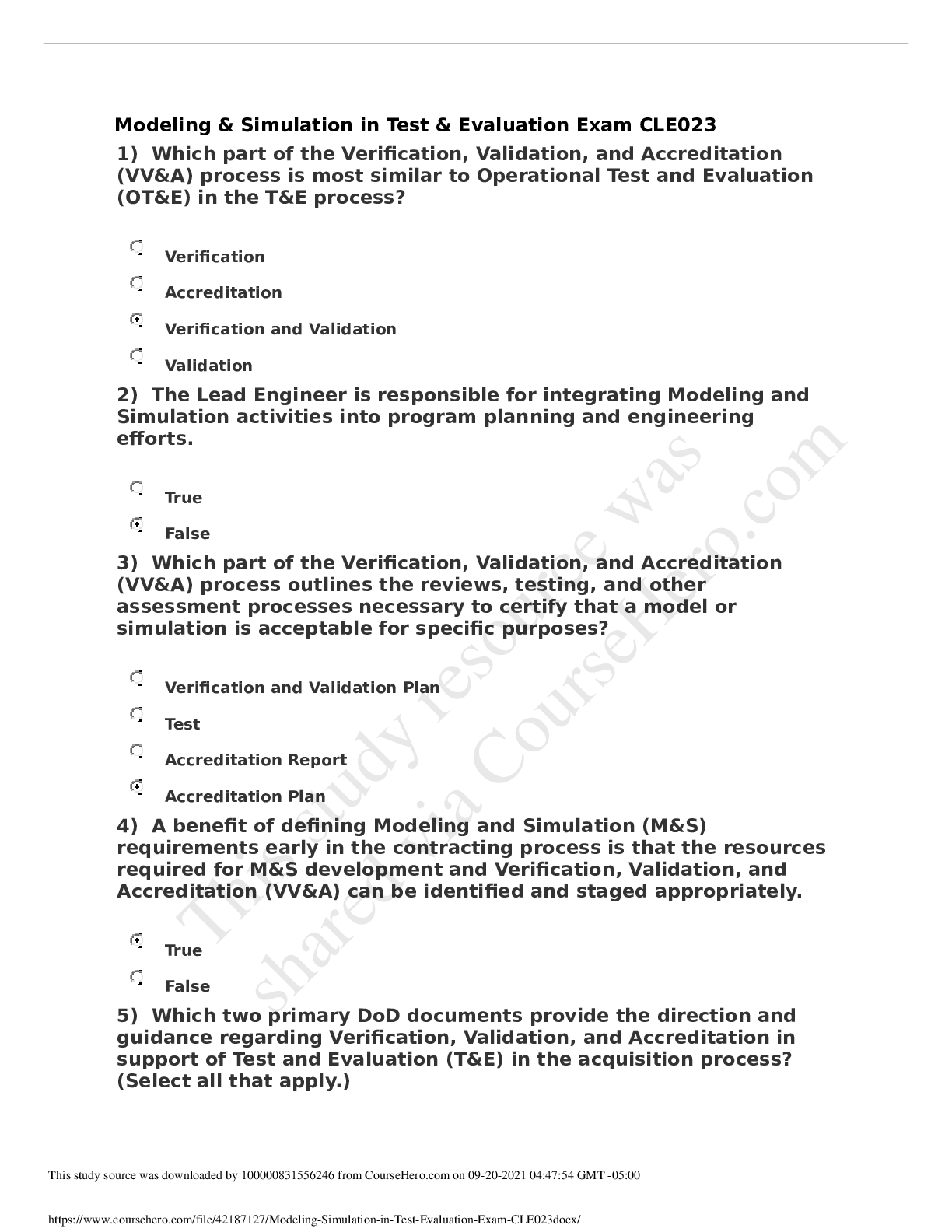Information Technology > QUESTIONS & ANSWERS > Modeling & Simulation in Test & Evaluation Exam CLE023 (All)
