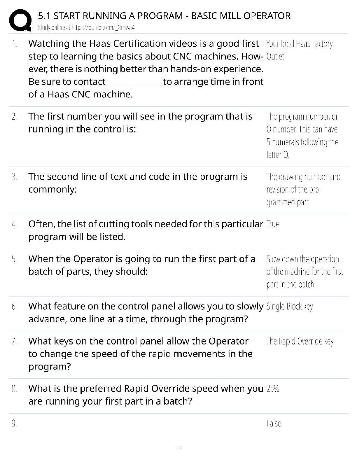Information Technology > QUESTIONS & ANSWERS > 5.1 Start Running a Program / Basic Mill Operator Certification / 2025 Update / Score 100% (All)