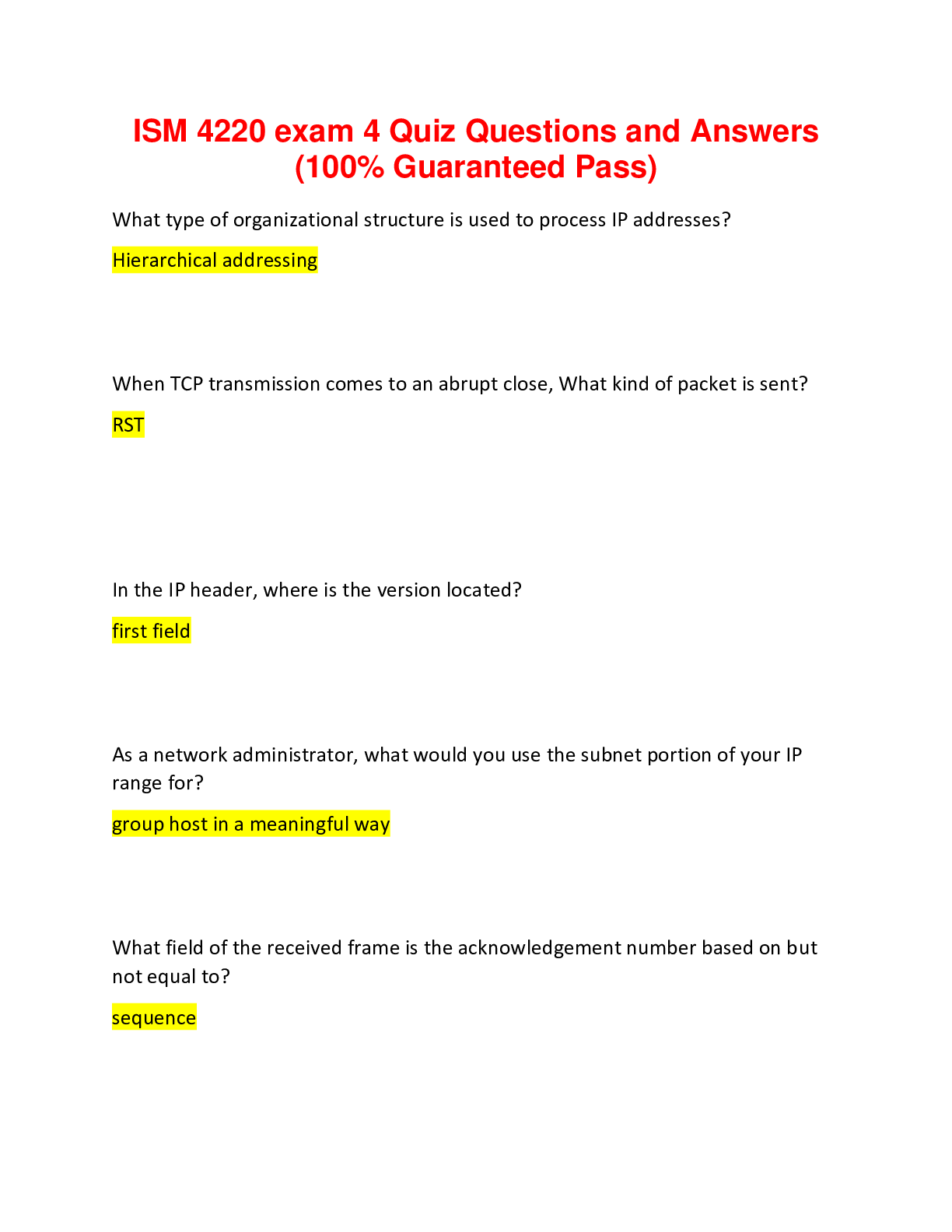 Information Technology > EXAM > ISM 4220 exam 4 Quiz Questions and Answers (100% Guaranteed Pass) (All)