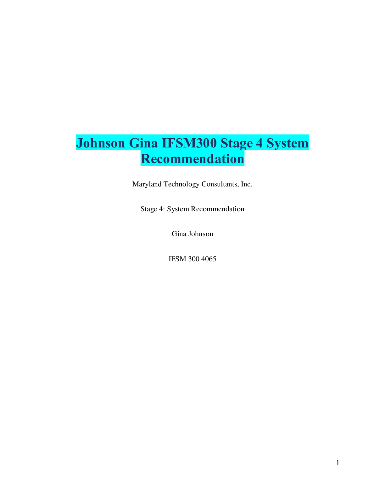 Information Technology > ESSAY > Johnson Gina IFSM300 Stage 4 System Recommendation (All)