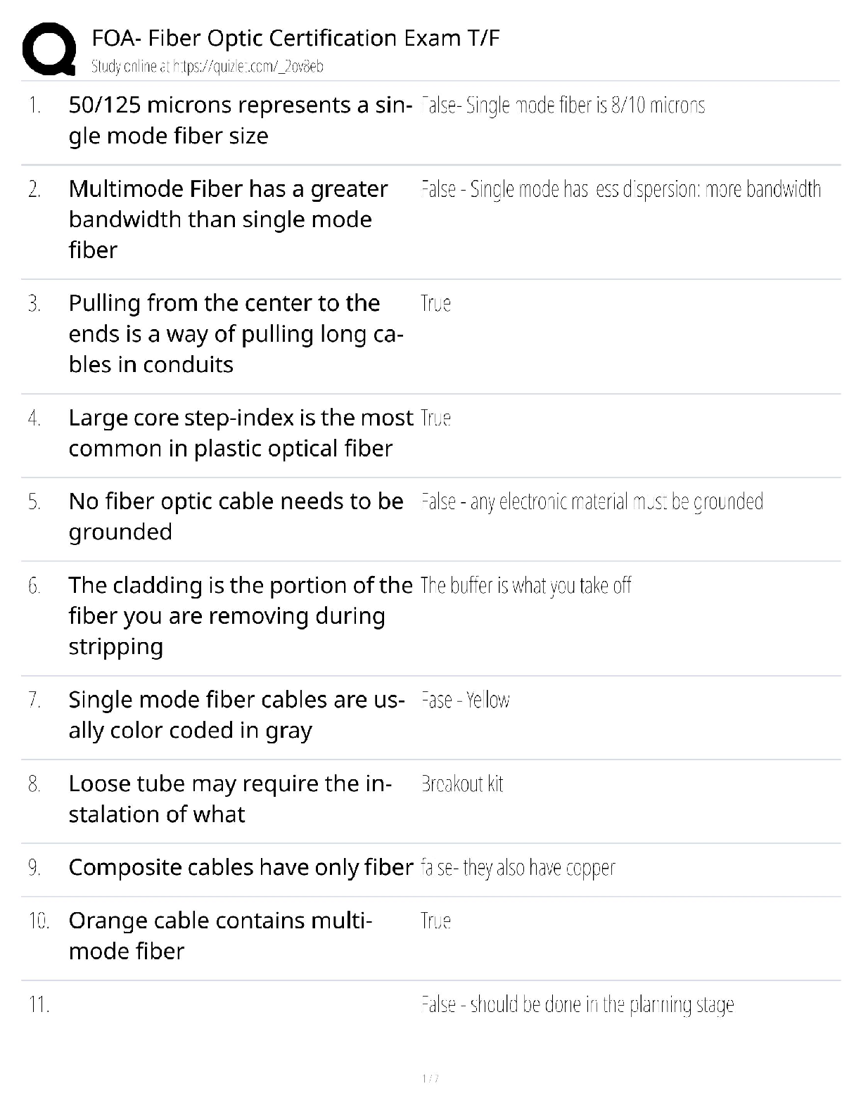 Information Technology > QUESTIONS & ANSWERS > FOA Fiber Optic Certification Exam / True-False (T/F) Questions / 2025 Study Guide / Score 100% / Test Bank (All)