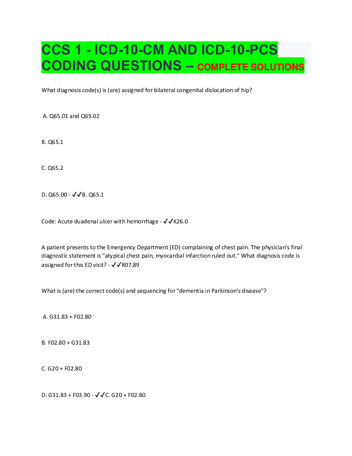 Information Technology > EXAMs > CCS 1 - ICD-10-CM AND ICD-10-PCS CODING QUESTIONS – COMPLETE SOLUTIONS (All)
