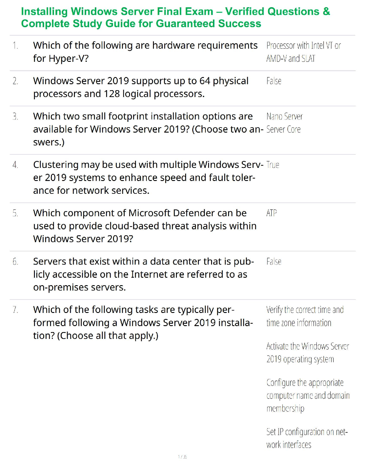 Information Technology > STUDY GUIDE > Installing Windows Server Final Exam – Verified Questions & Complete Study Guide for Guaranteed Success (All)