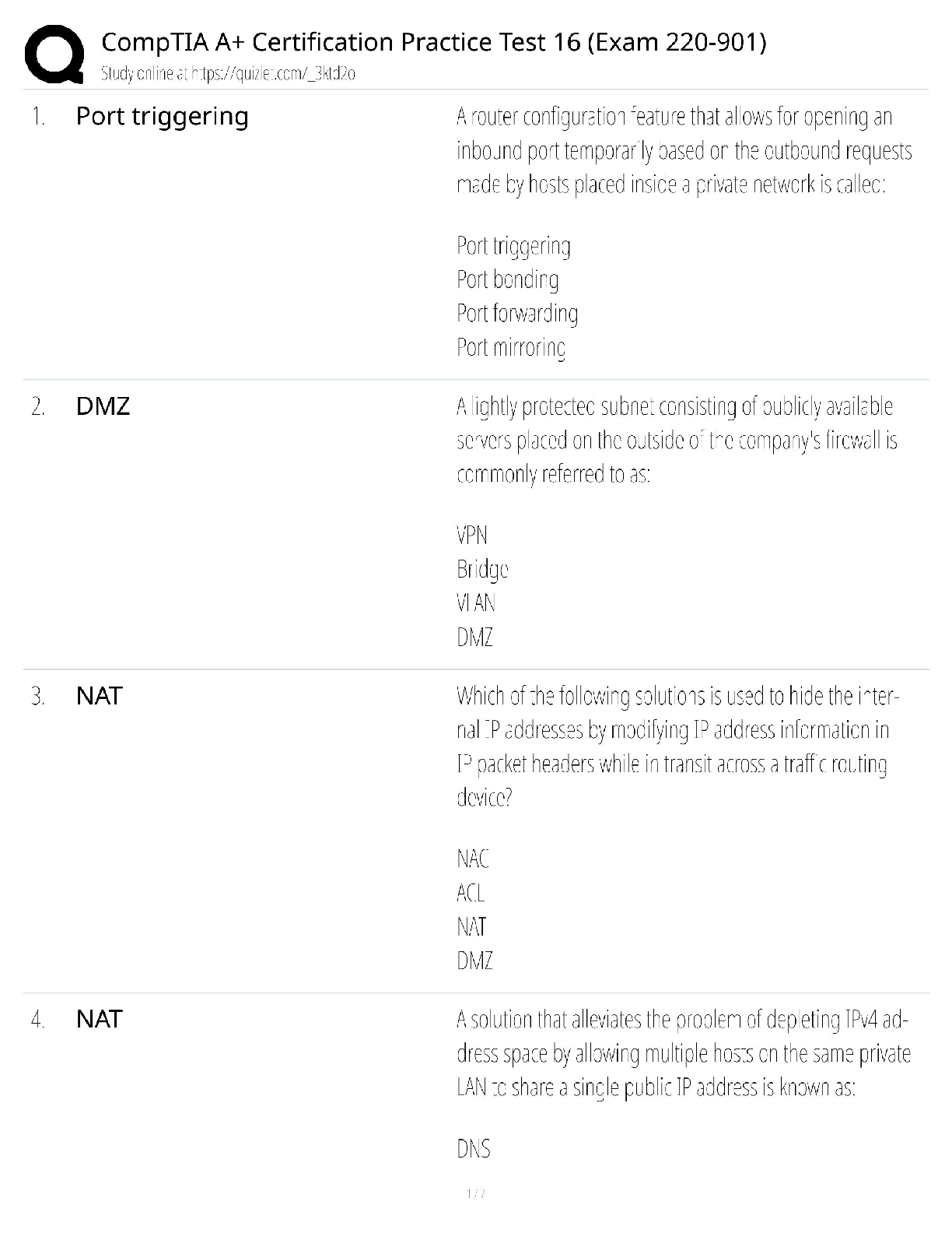 Information Technology > QUESTIONS & ANSWERS > CompTIA A+ Practice Test 16 / 220-901 Exam Simulation / 2025 Update / Score 100% (All)