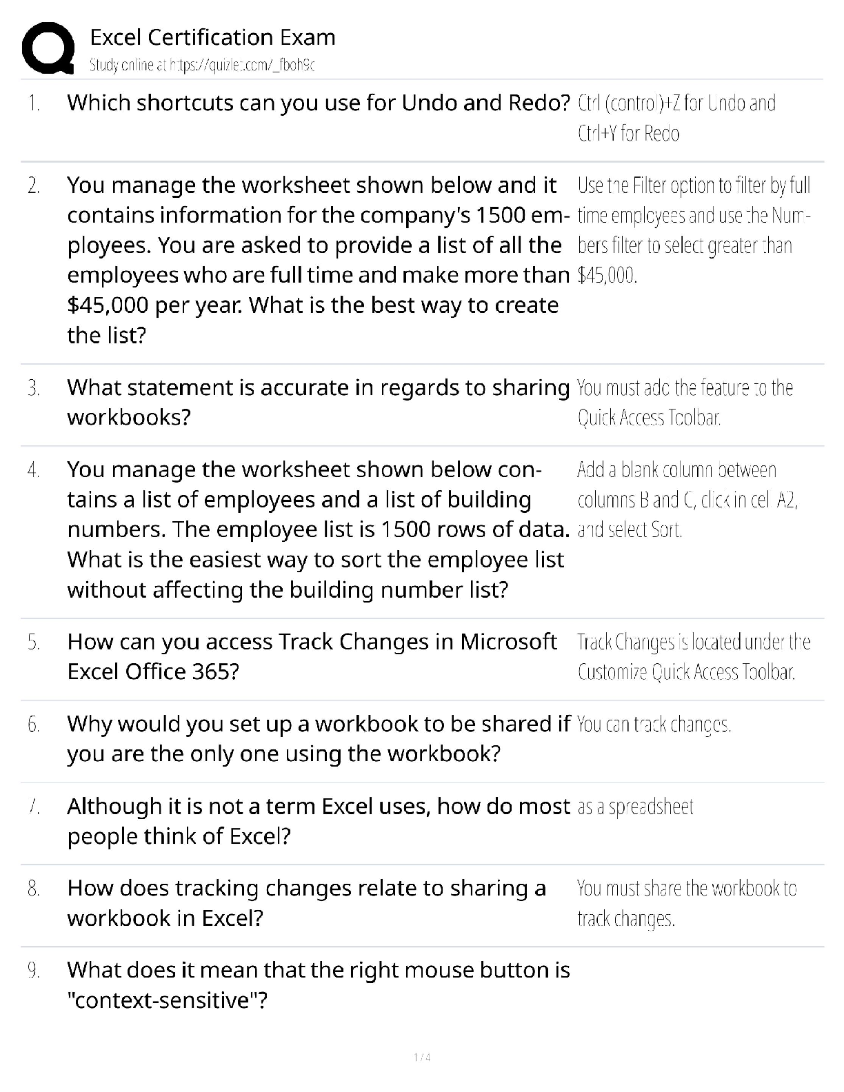 Information Technology > QUESTIONS & ANSWERS > Excel Certification Exam / MOS & Expert Guide / 2025 Update / Score 100% (All)