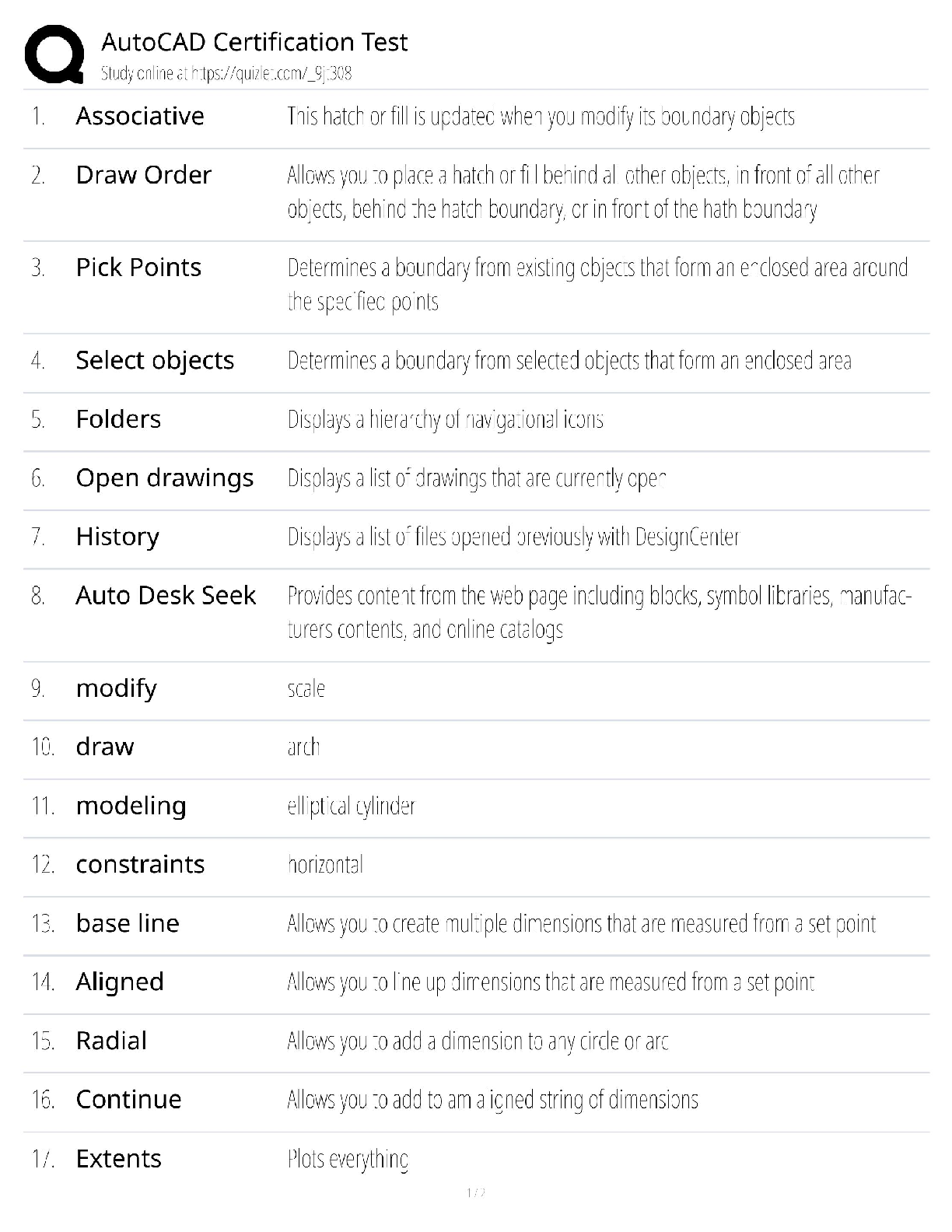 Information Technology > QUESTIONS & ANSWERS > AutoCAD Certification Test / Autodesk Certified Professional / 2025 Update / Score 100% (All)
