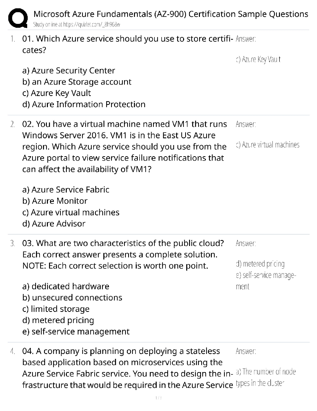 Information Technology > QUESTIONS & ANSWERS > Microsoft Azure AZ-900 Certification / Sample Questions & Practice Test / 2025 Update / Score 100% (All)