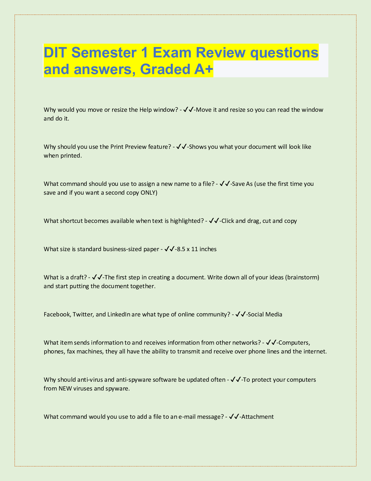 Information Technology > QUESTIONS & ANSWERS > DIT Semester 1 Exam Review questions and answers, Graded A+ (All)