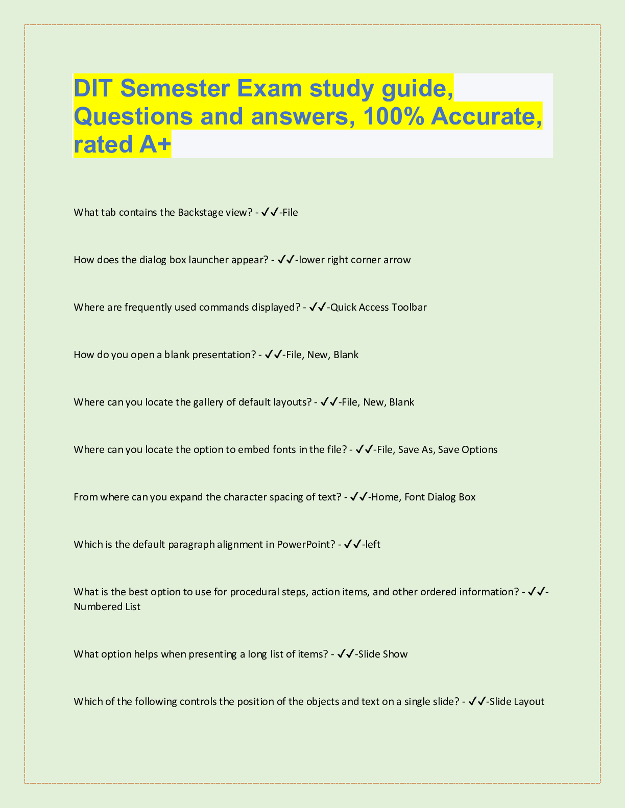 Information Technology > QUESTIONS & ANSWERS > Dit Semester 1 Course Review Questions and answers, 100% Accurate, Graded A+ (All)