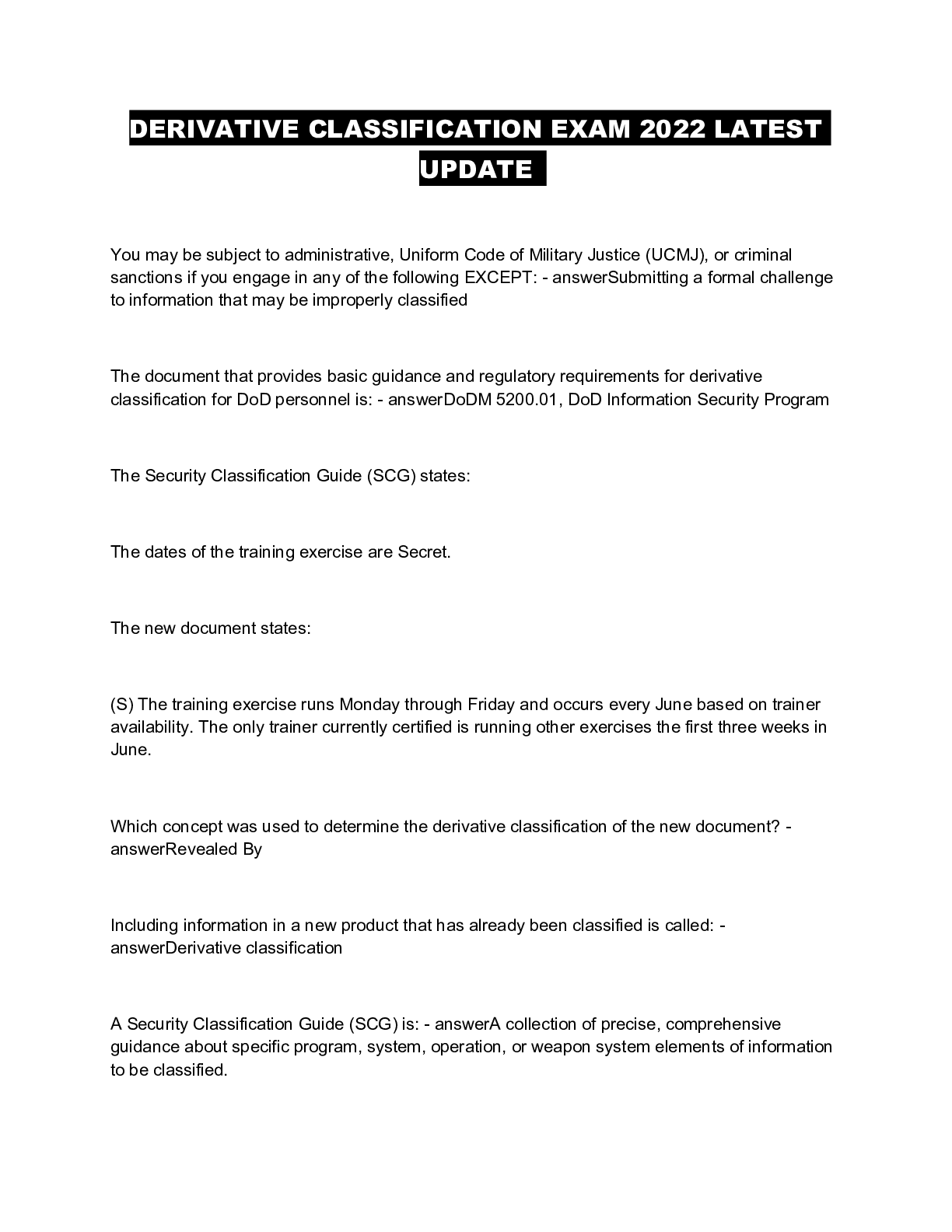 Information Technology > QUESTIONS & ANSWERS > DERIVATIVE CLASSIFICATION EXAM 2022 LATEST UPDATE (All)