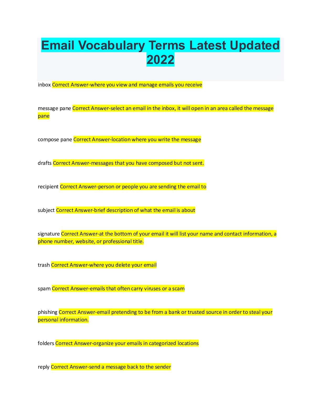Information Technology > QUESTIONS & ANSWERS > Email Vocabulary Terms Latest Updated 2022 (All)