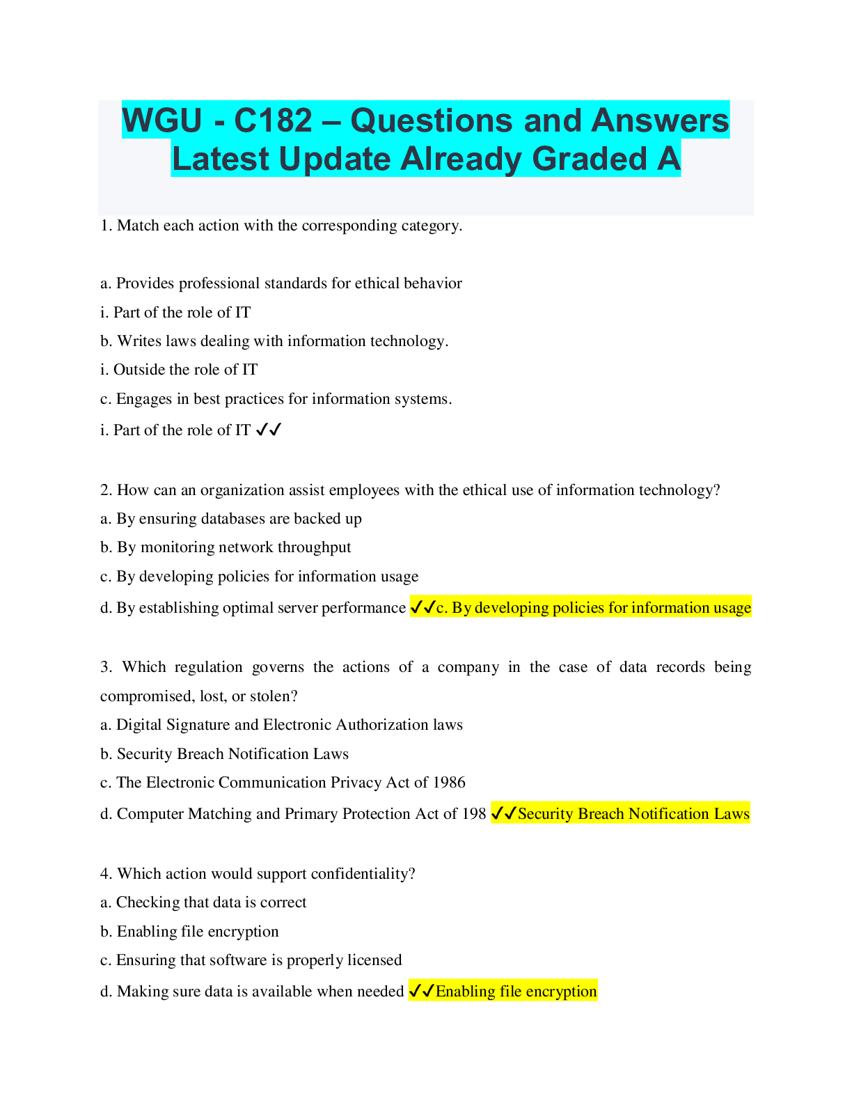 Information Technology > QUESTIONS & ANSWERS > WGU - C182 – Questions and Answers Latest Update Already Graded A (All)