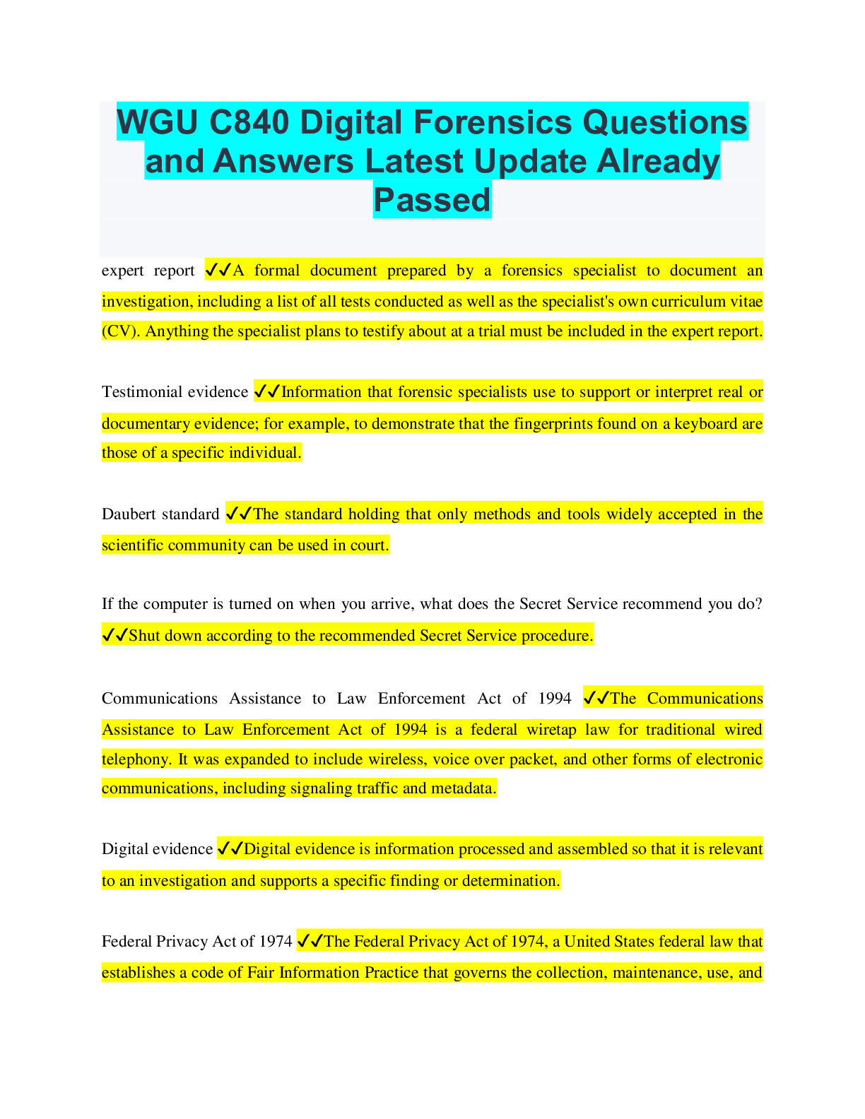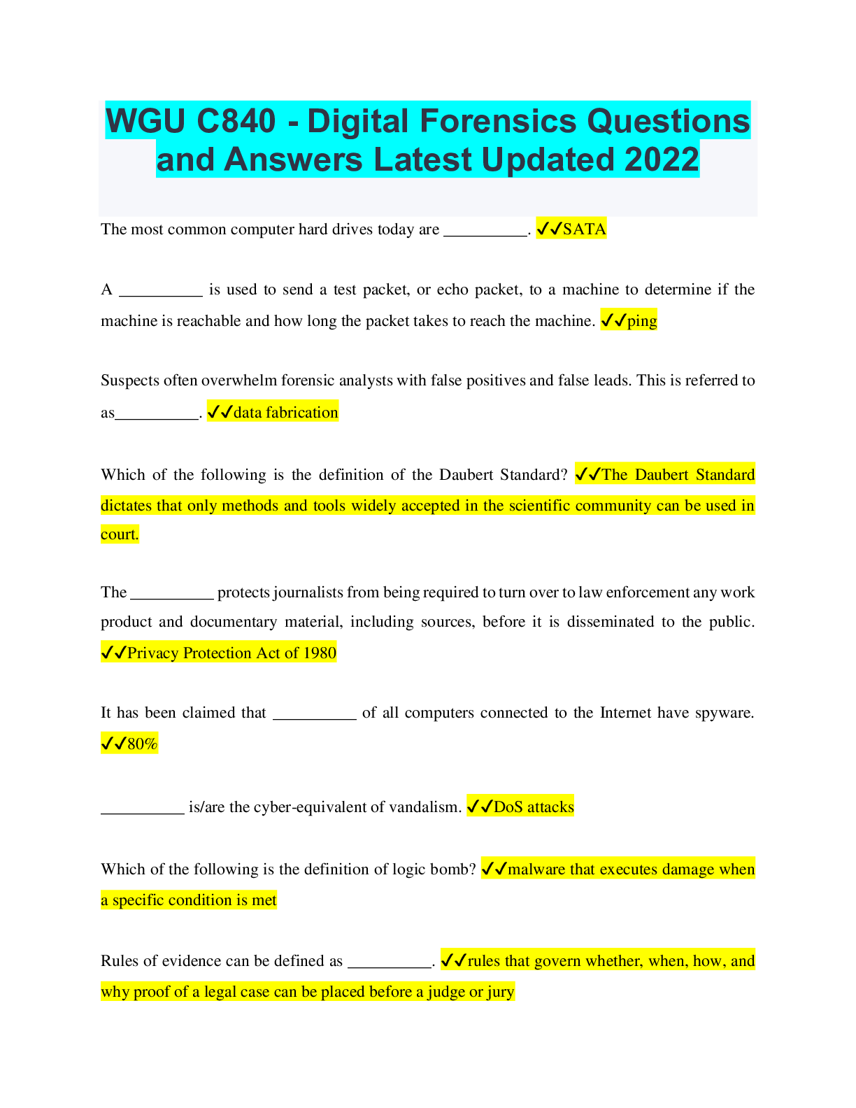 Information Technology > QUESTIONS & ANSWERS > WGU C840 - Digital Forensics Questions and Answers Latest Updated 2022 (All)