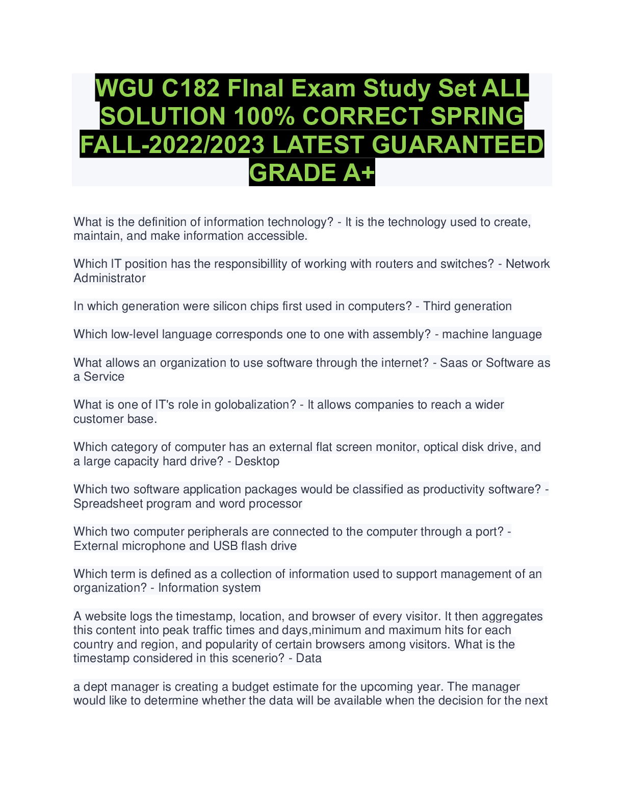 Information Technology > EXAM > WGU C182 FInal Exam Study Set ALL SOLUTION 100% CORRECT SPRING FALL-2022/2023 LATEST GUARANTEED GRADE A+ (All)