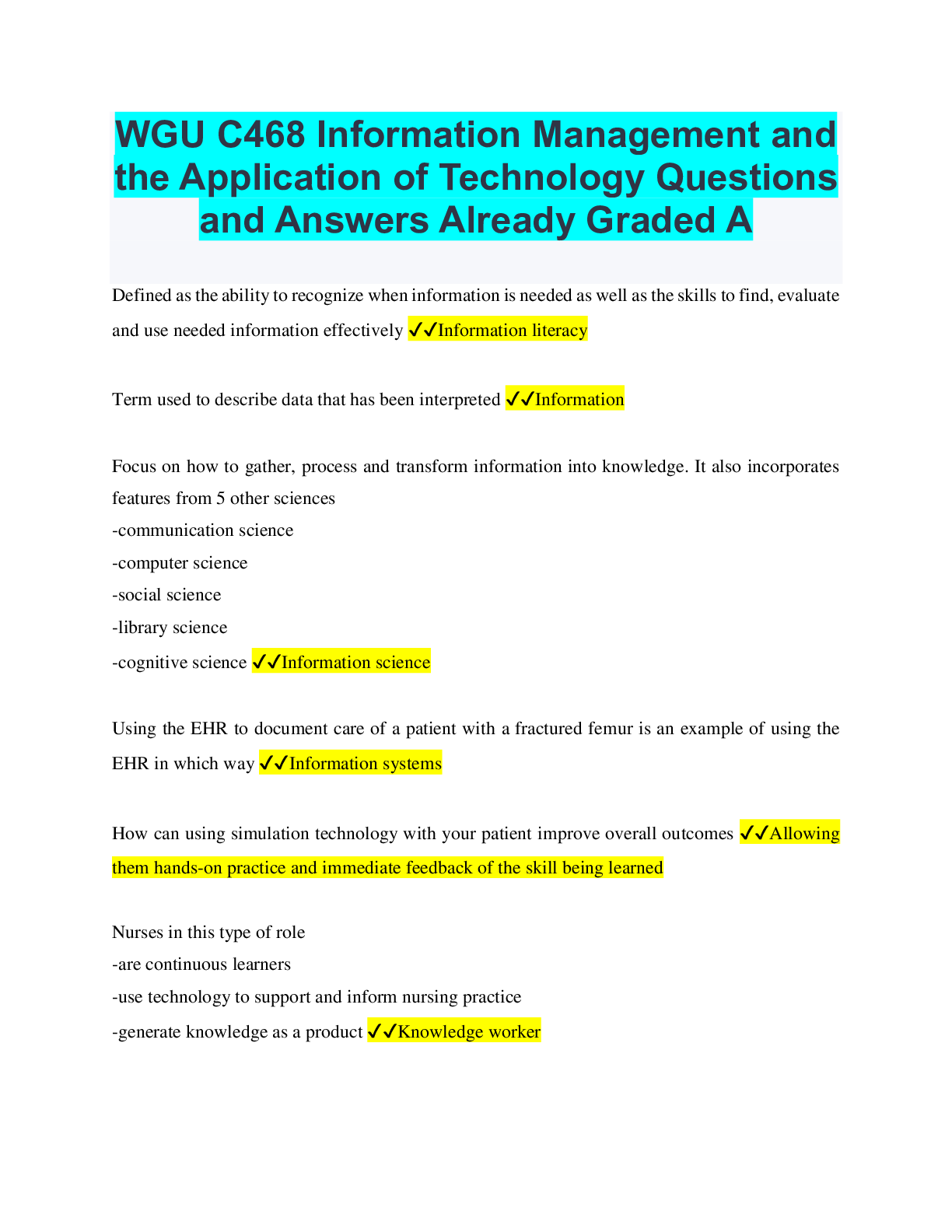 Information Technology > EXAM > WGU C468 Information Management and the Application of Technology Questions and Answers Already Graded A (All)
