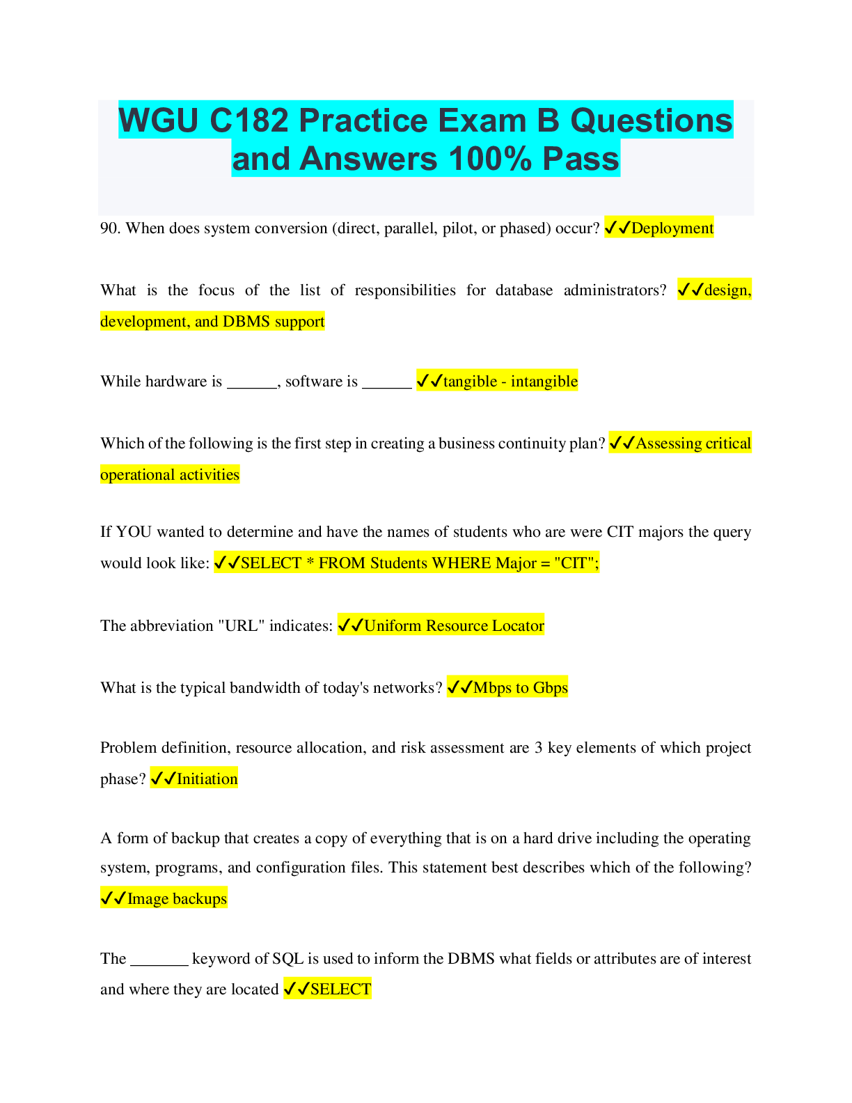 Information Technology > QUESTIONS & ANSWERS > WGU C182 Practice Exam B Questions and Answers 100% Pass (All)