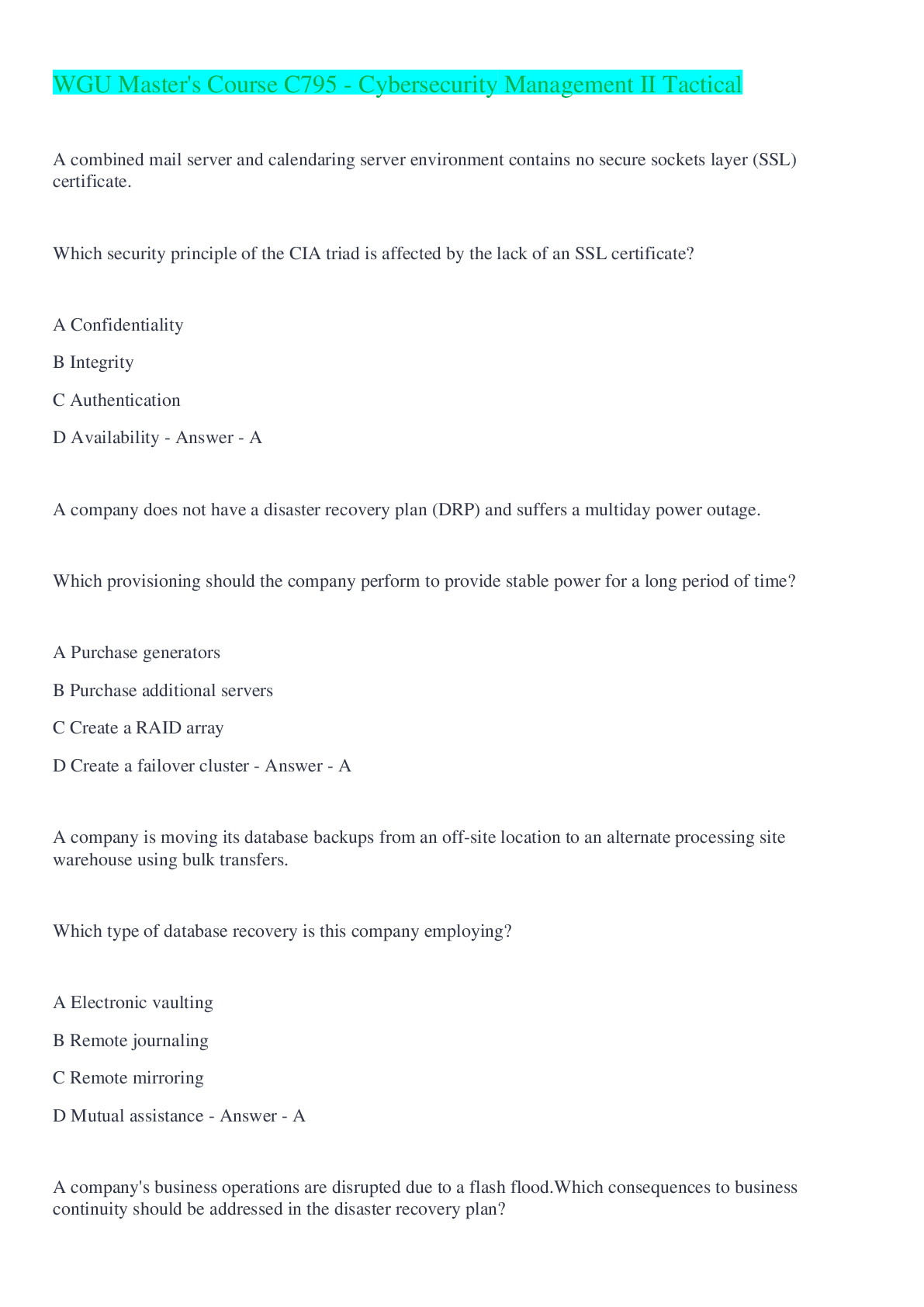 Information Technology > EXAM > WGU Master's Course C795 - Cybersecurity Management II Tactical (All)