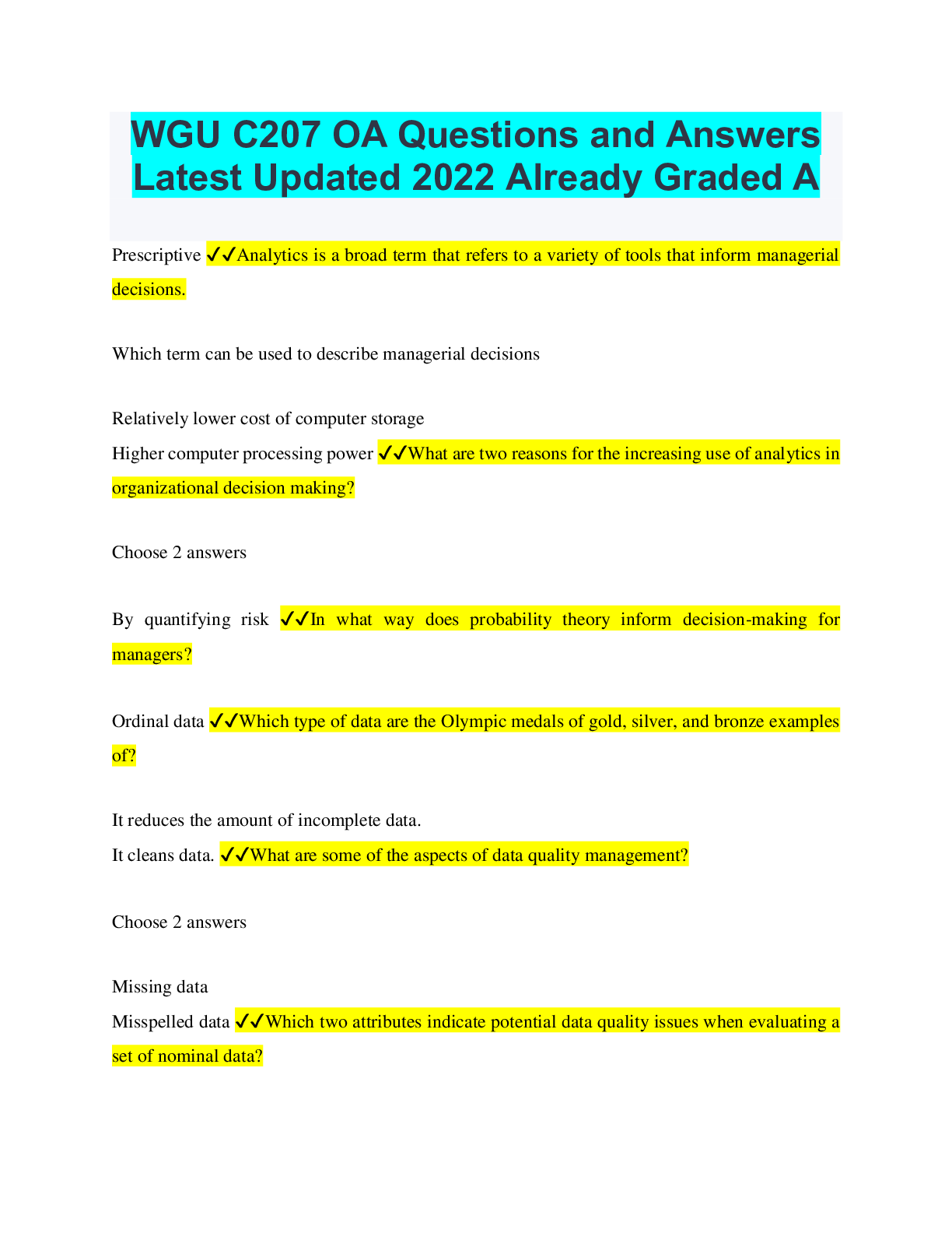 Information Technology > QUESTIONS & ANSWERS > WGU C207 OA Questions and Answers Latest Updated 2022 Already Graded A (All)