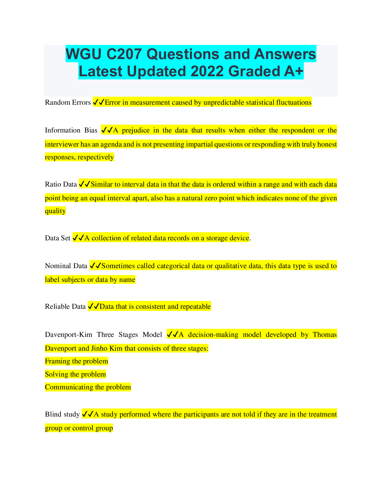 Information Technology > QUESTIONS & ANSWERS > WGU C207 Questions and Answers Latest Updated 2022 Graded A+ (All)