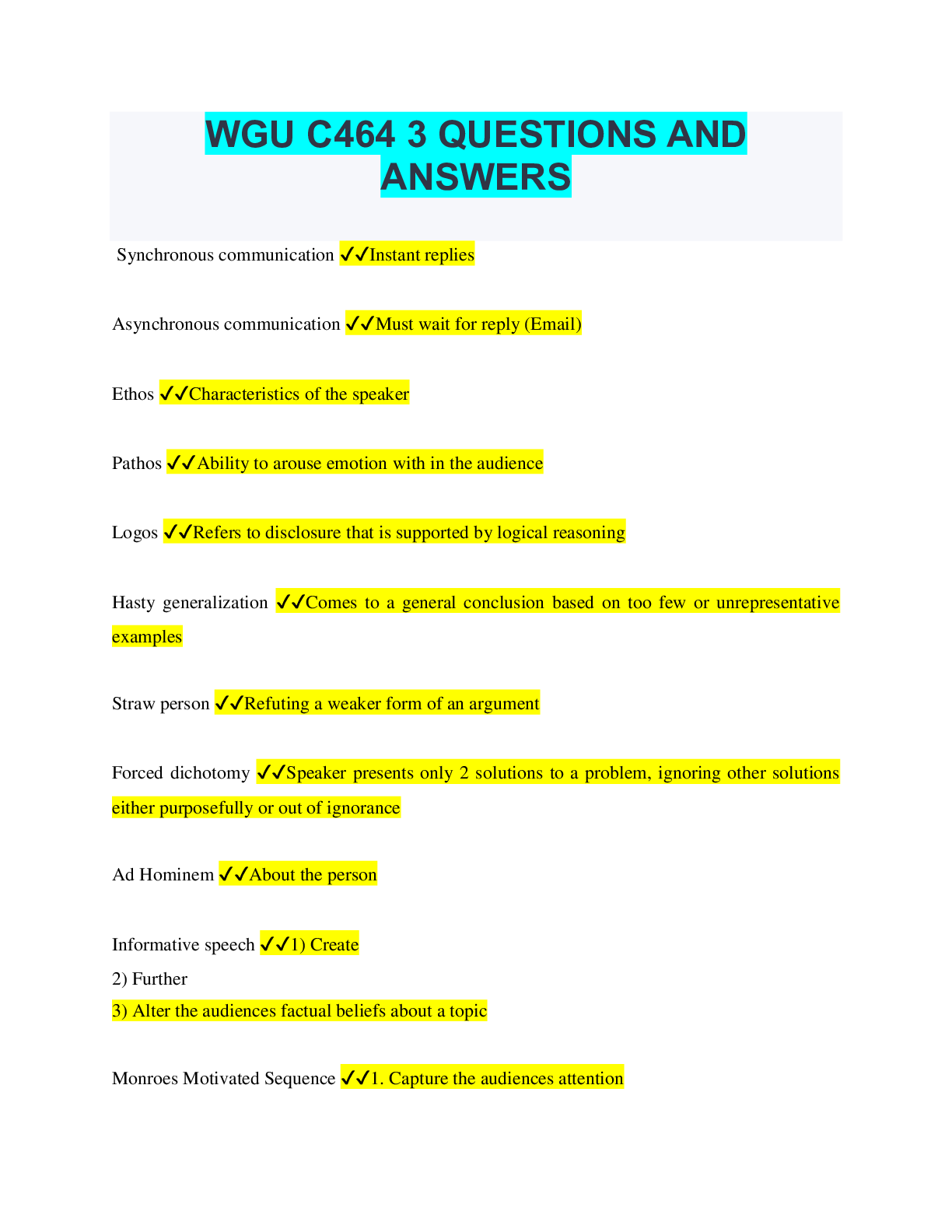 Information Technology > QUESTIONS & ANSWERS > WGU C464 - Introduction to Communication Questions and Answers Already Passed (All)