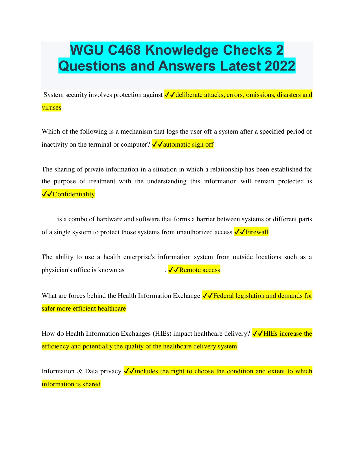 Information Technology > QUESTIONS & ANSWERS > WGU C468 Knowledge Checks 2 Questions and Answers Latest 2022 (All)