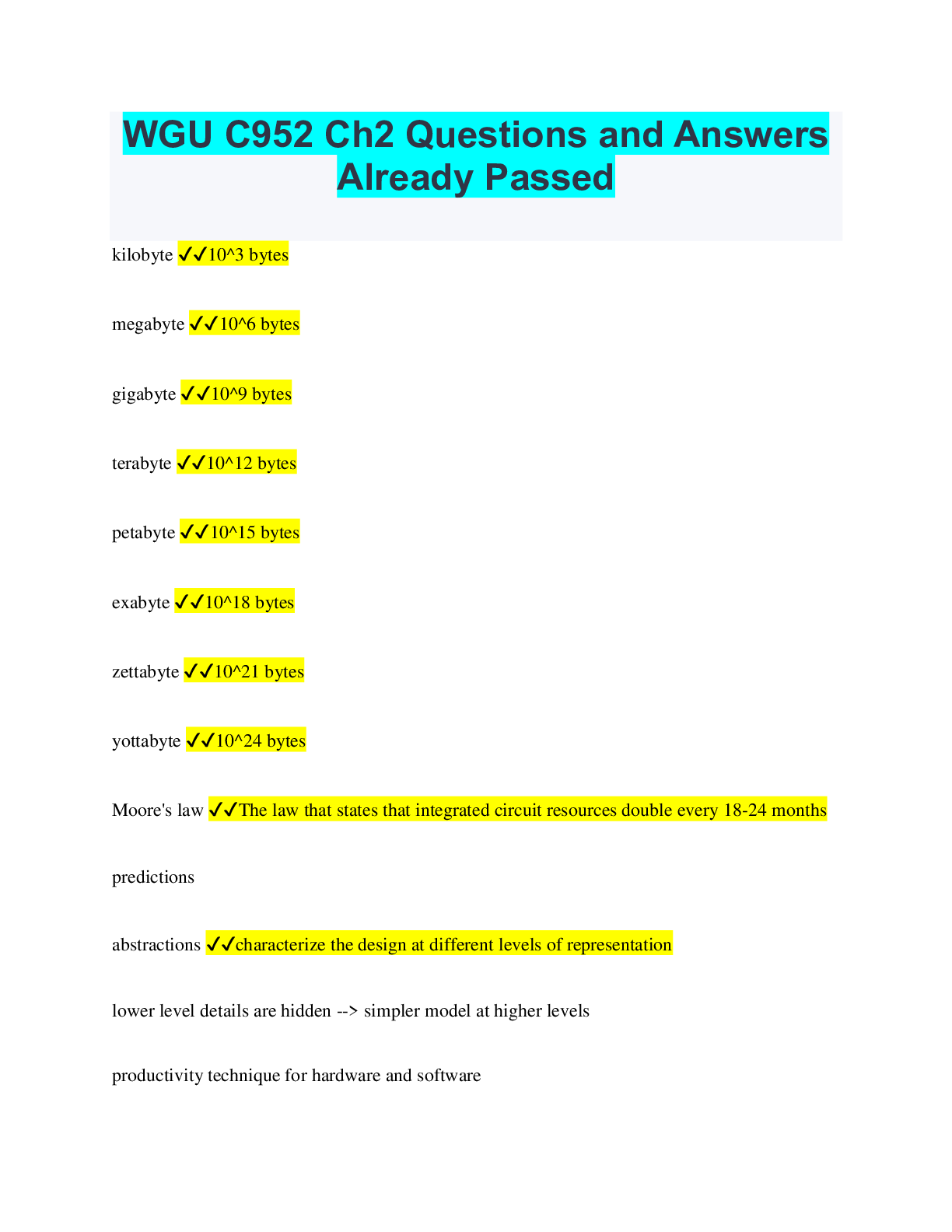Information Technology > QUESTIONS & ANSWERS > WGU C952 Ch2 Questions and Answers Already Passed (All)