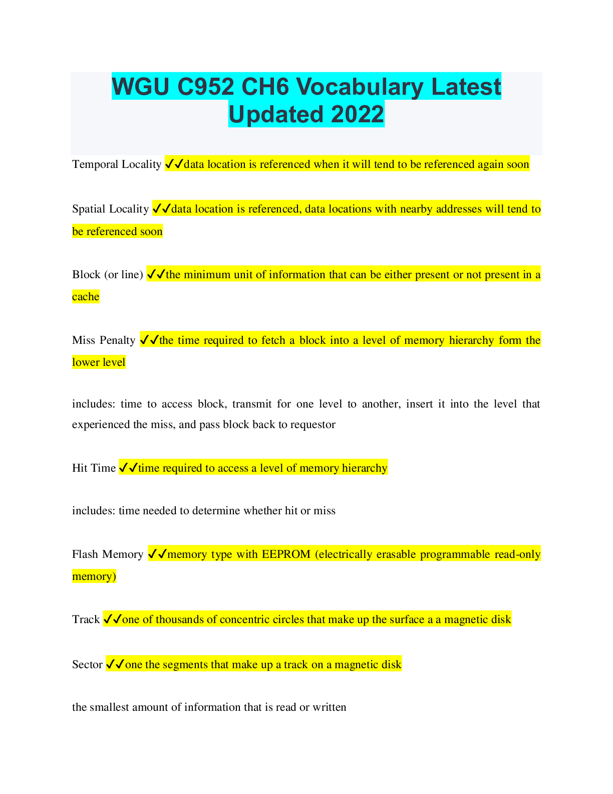Information Technology > QUESTIONS & ANSWERS > WGU C952 CH6 Vocabulary Latest Updated 2022 (All)