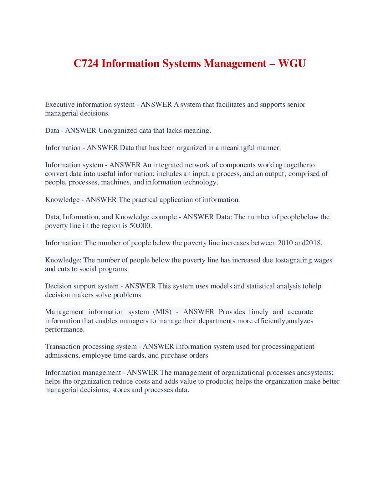 Information Technology > EXAM > C724 Information Systems Management – WGU (Complete Solutions) (All)