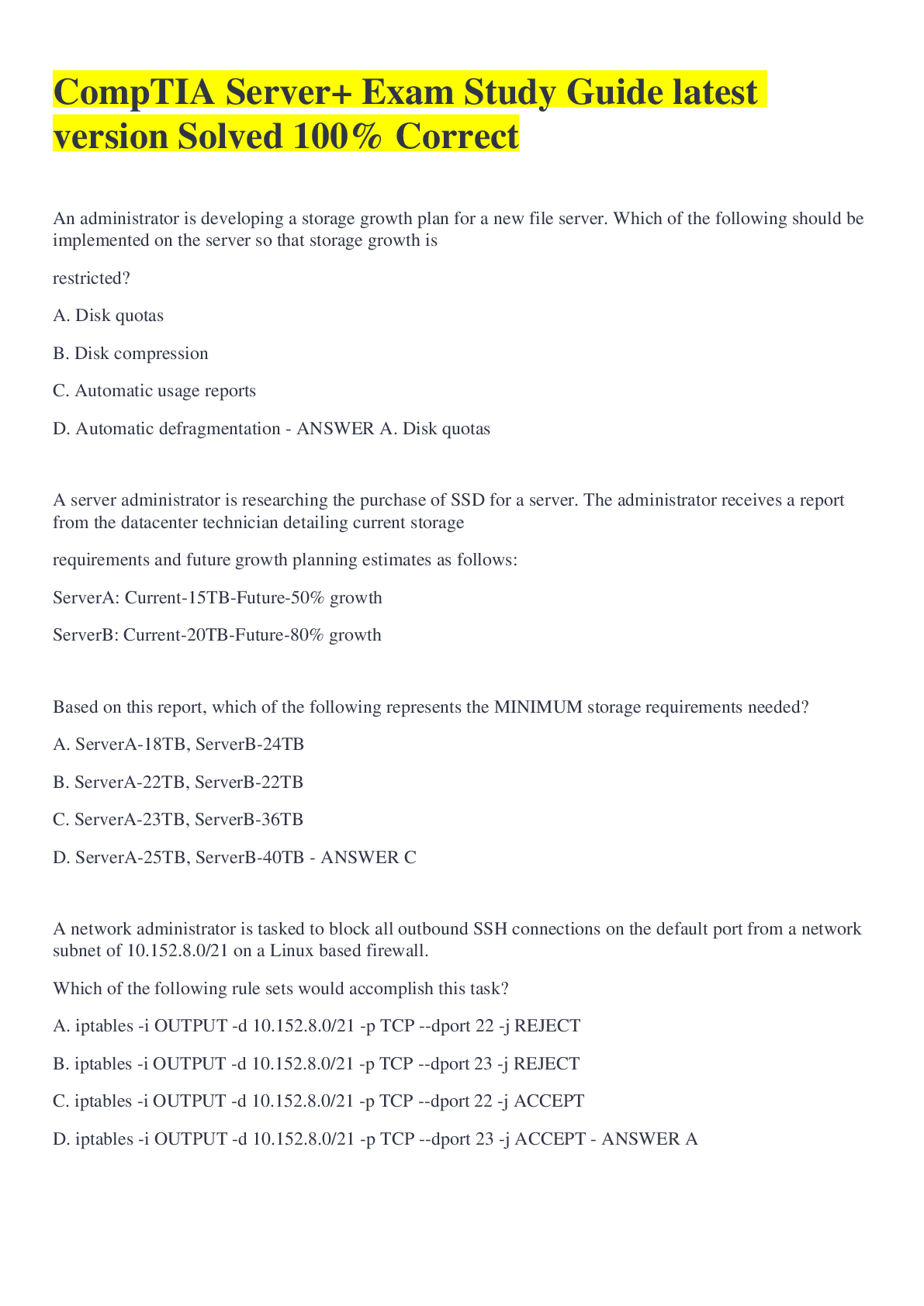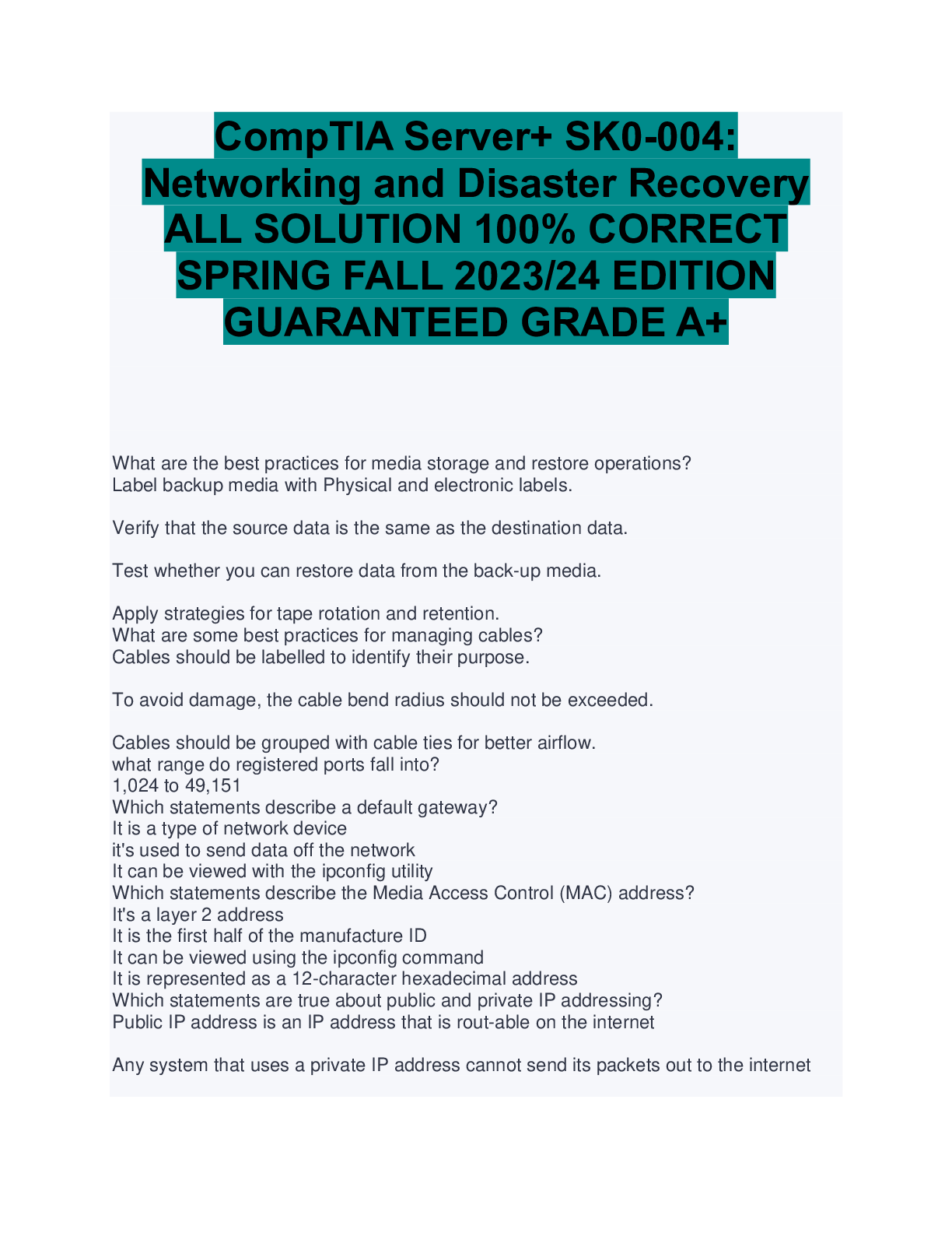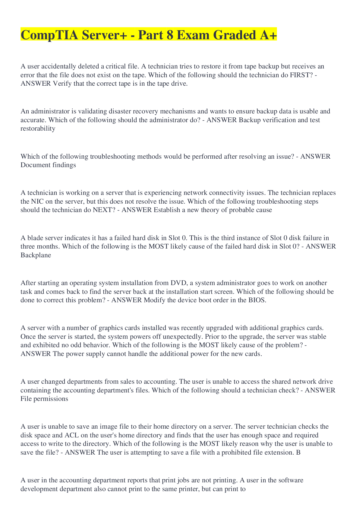 Information Technology > EXAM > CompTIA Server+ - Part 8 Exam Graded A+ (All)