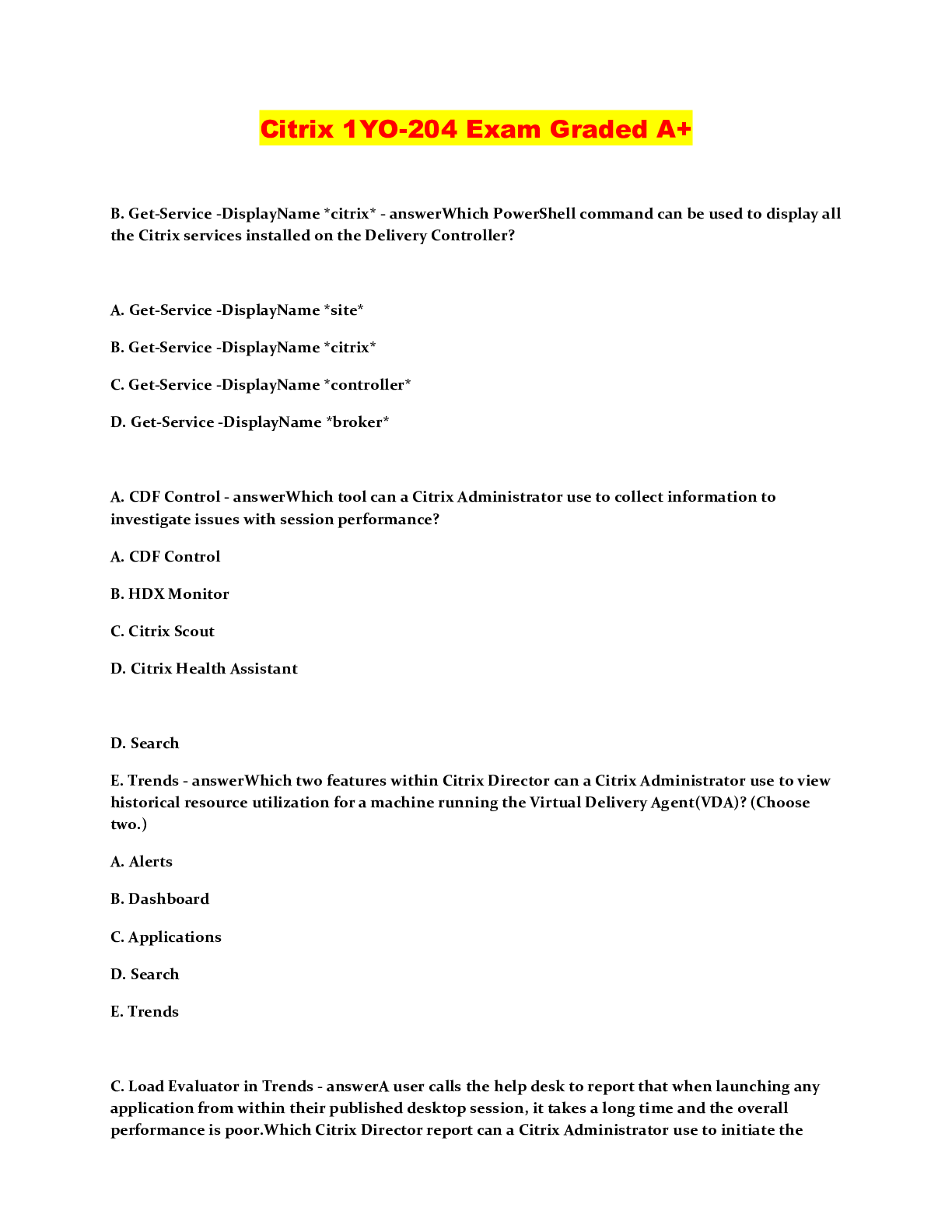 Information Technology > QUESTIONS & ANSWERS > Citrix 1YO-204 Exam Graded A+ (All)