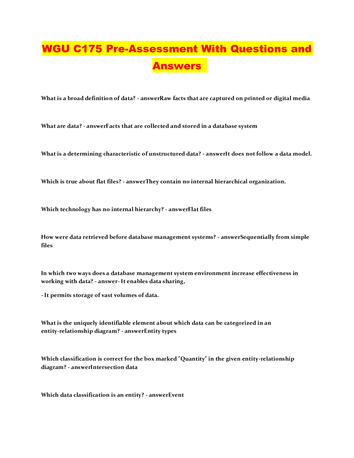 Information Technology > QUESTIONS & ANSWERS > WGU C175 Pre-Assessment With Questions and Answers (All)