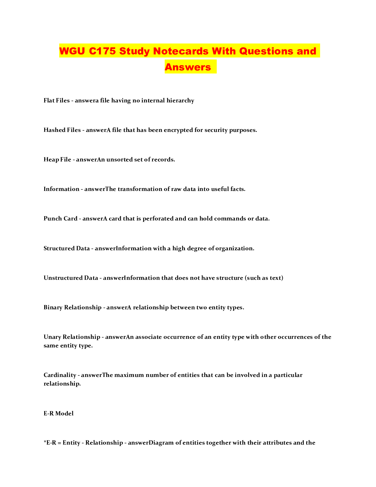 Information Technology > QUESTIONS & ANSWERS > WGU C175 Study Notecards With Questions and Answers (All)