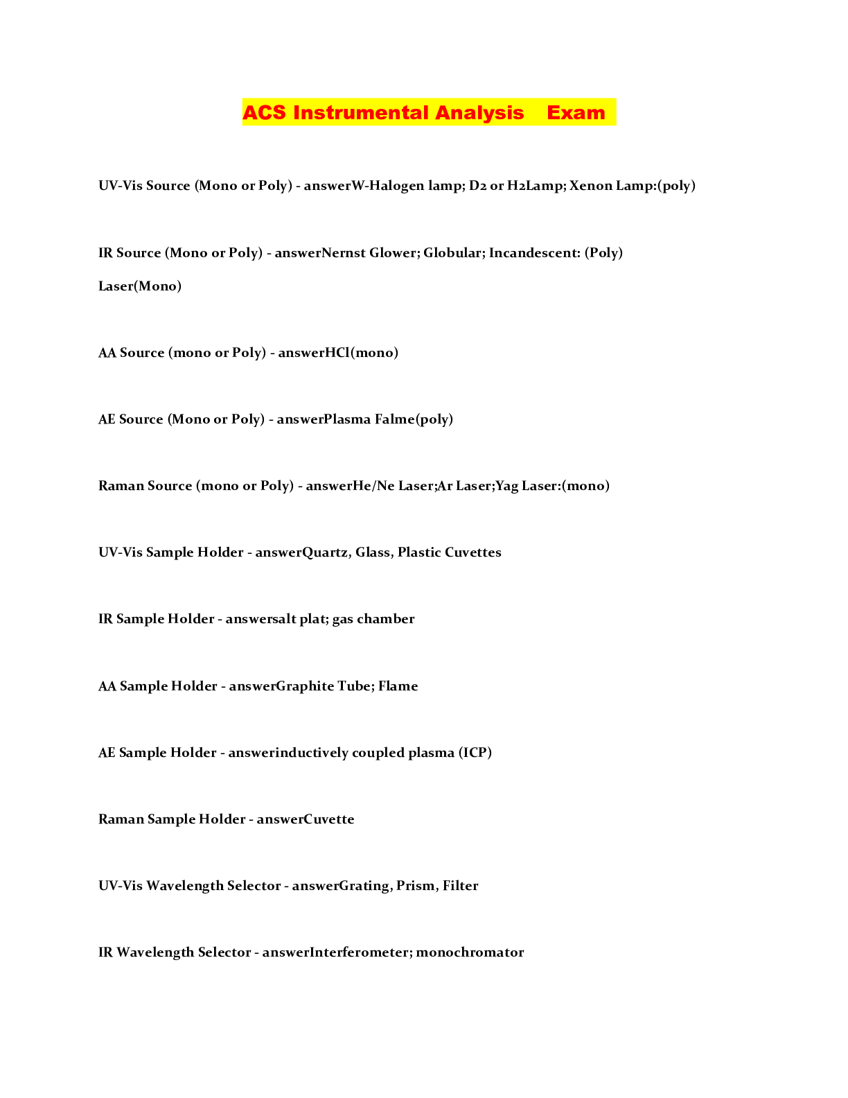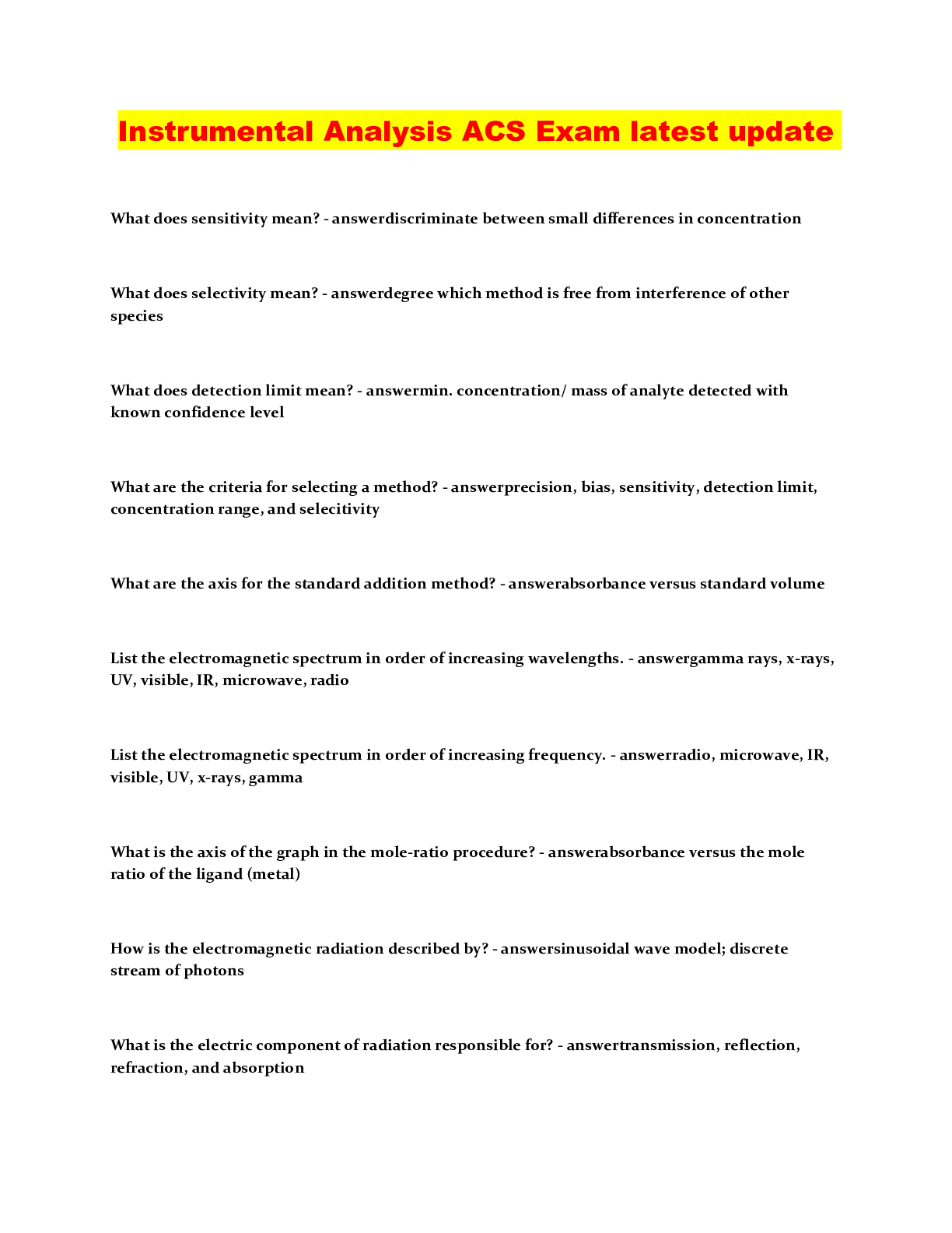 Information Technology > QUESTIONS & ANSWERS > Instrumental Analysis ACS Exam latest update (All)