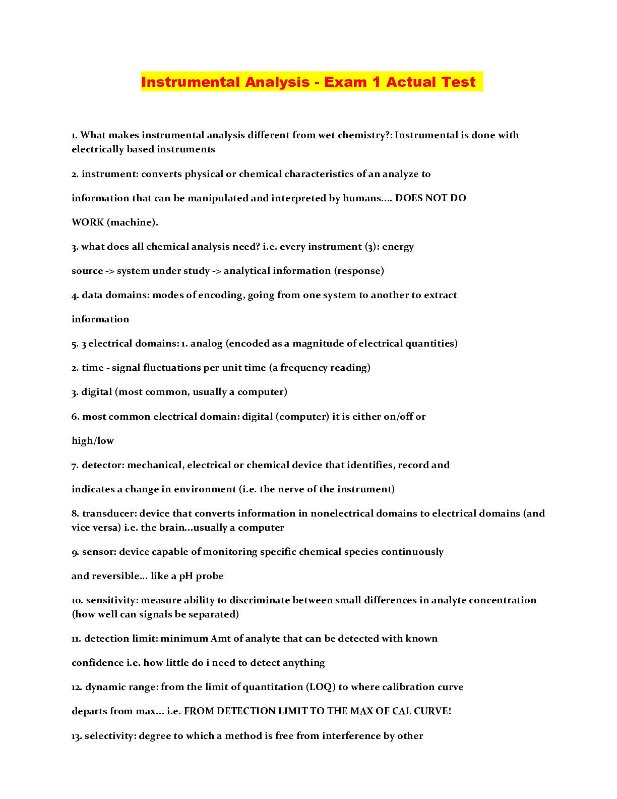 Information Technology > QUESTIONS & ANSWERS > Instrumental Analysis - Exam 1 Actual Test (All)