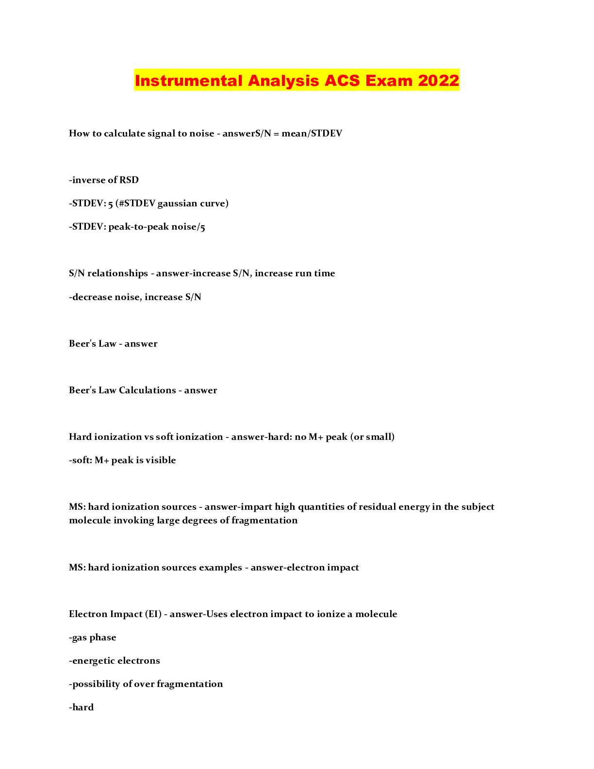 Information Technology > QUESTIONS & ANSWERS > Instrumental Analysis ACS Exam 2022 (All)