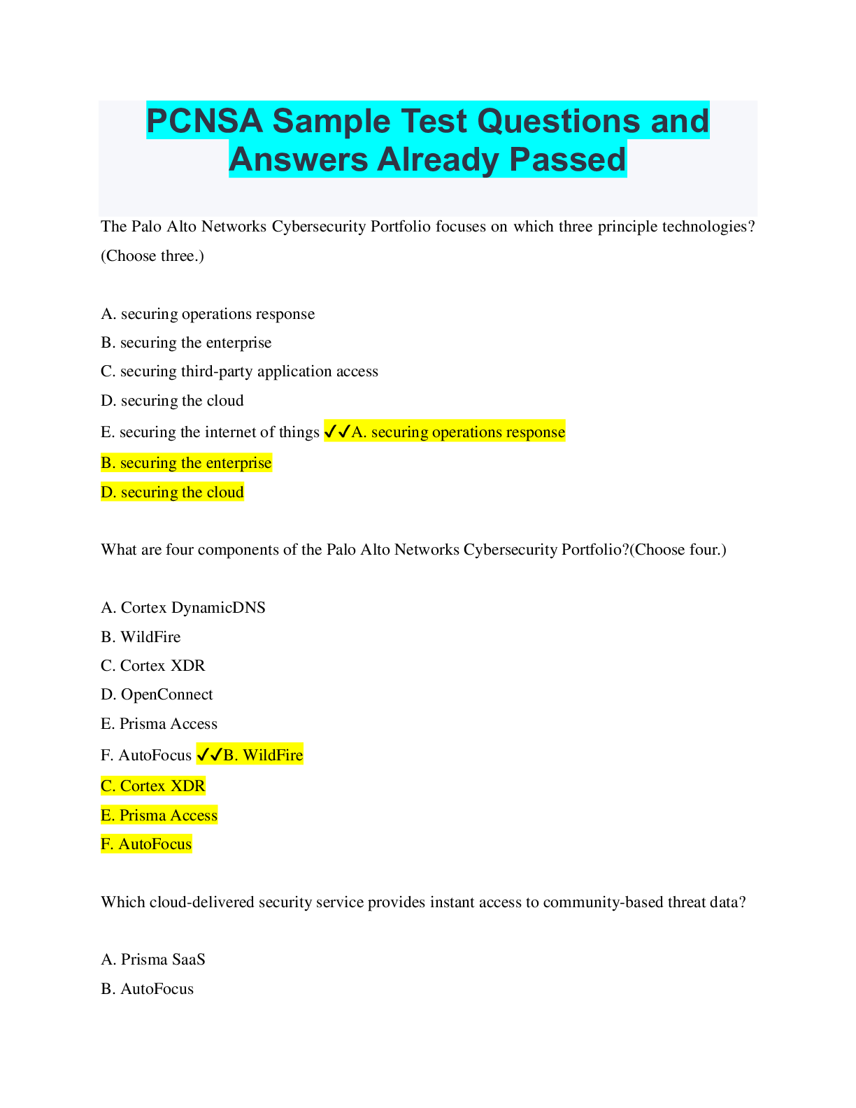 Information Technology > QUESTIONS & ANSWERS > PCNSA Sample Test Questions and Answers Already Passed (All)