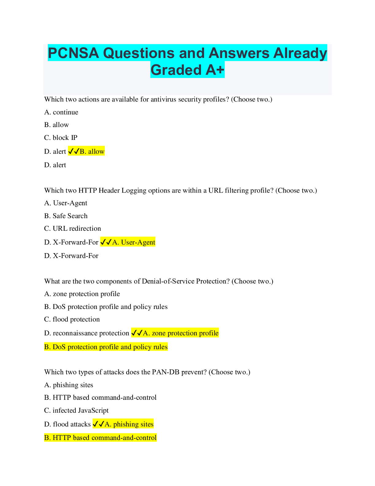 Information Technology > QUESTIONS & ANSWERS > PCNSA Questions and Answers Already Graded A+ (All)