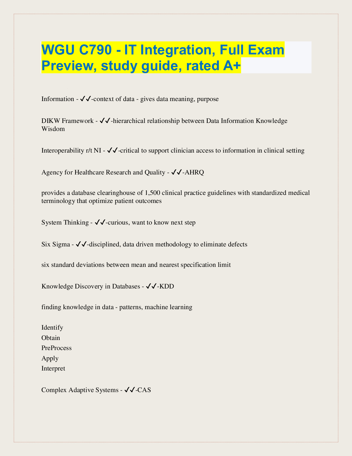 Information Technology > QUESTIONS & ANSWERS > WGU C790 - IT Integration, Full Exam Preview, study guide, rated A+ (All)