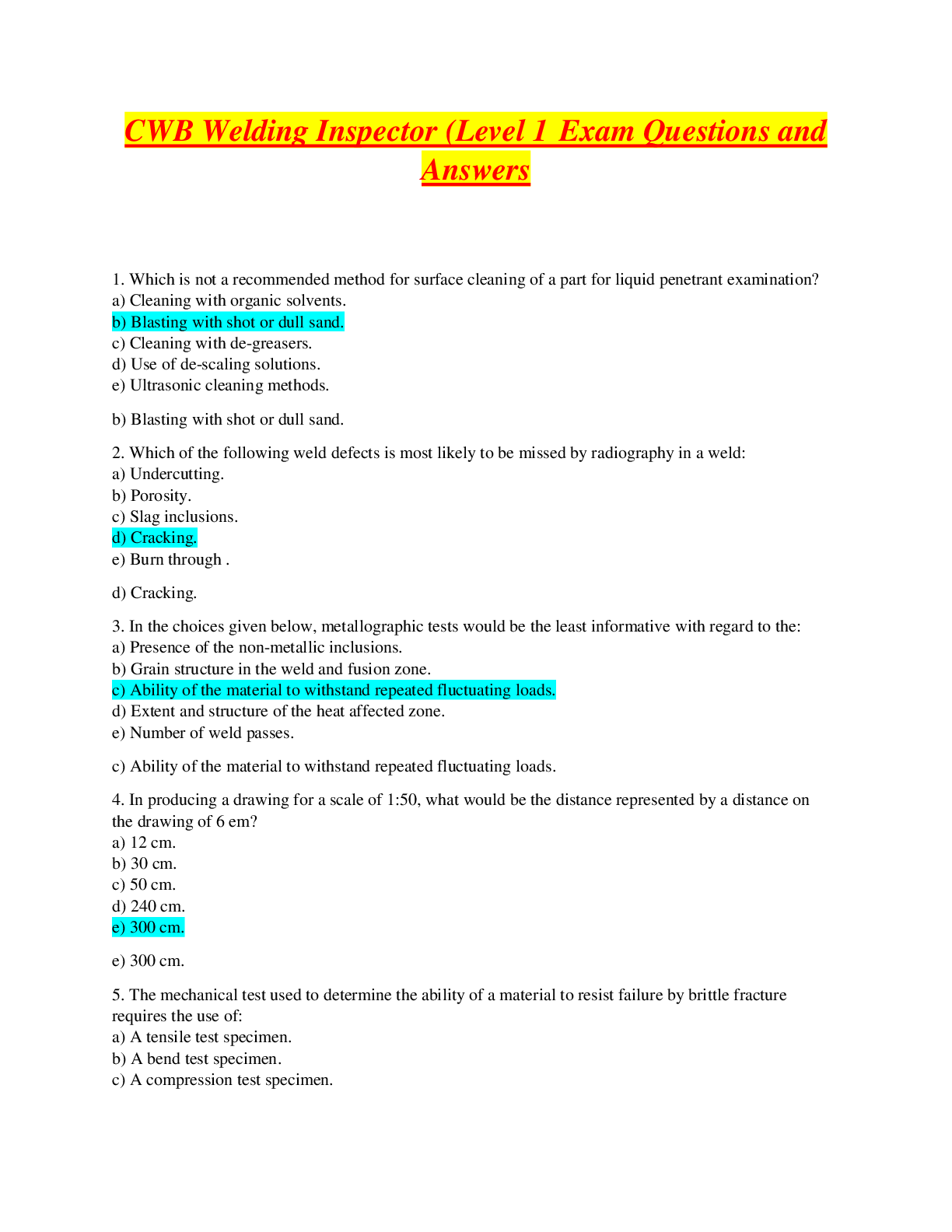 Material Science > EXAM > CWB Welding Inspector (Level 1 Exam Questions and Answers (All)