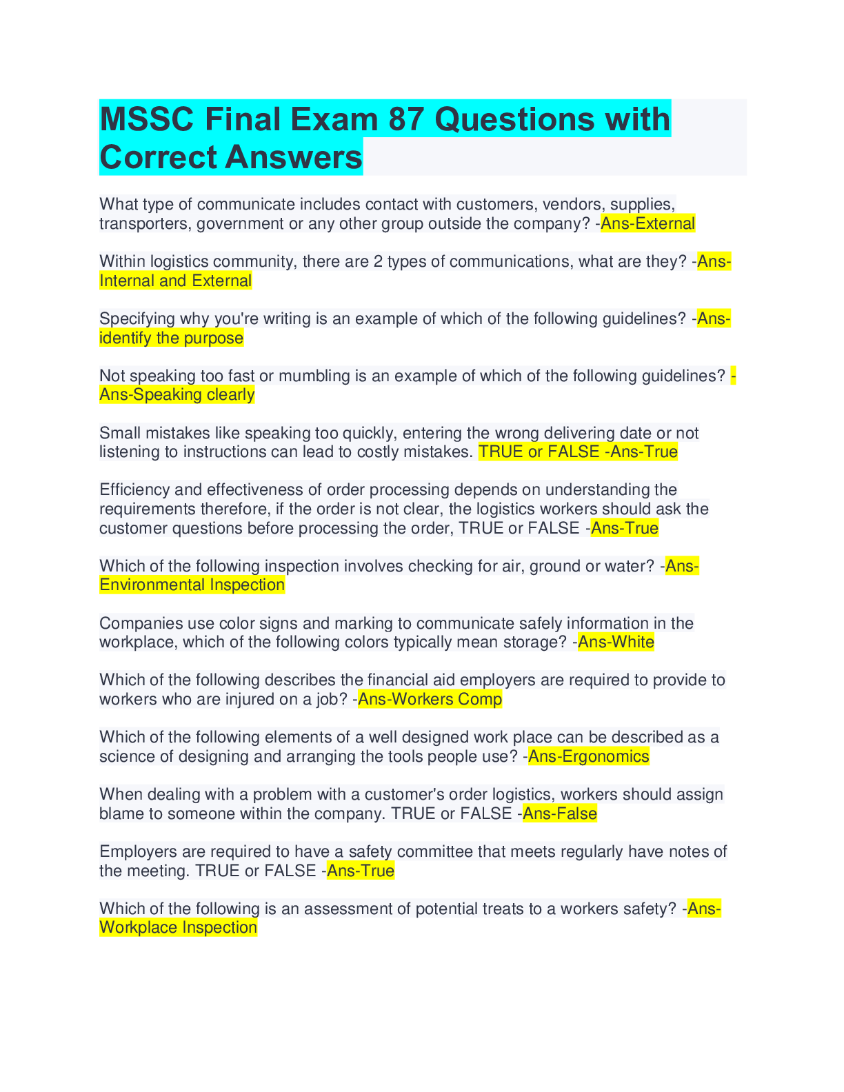 Communication > QUESTIONS & ANSWERS > MSSC Final Exam 87 Questions with Correct Answers (All)