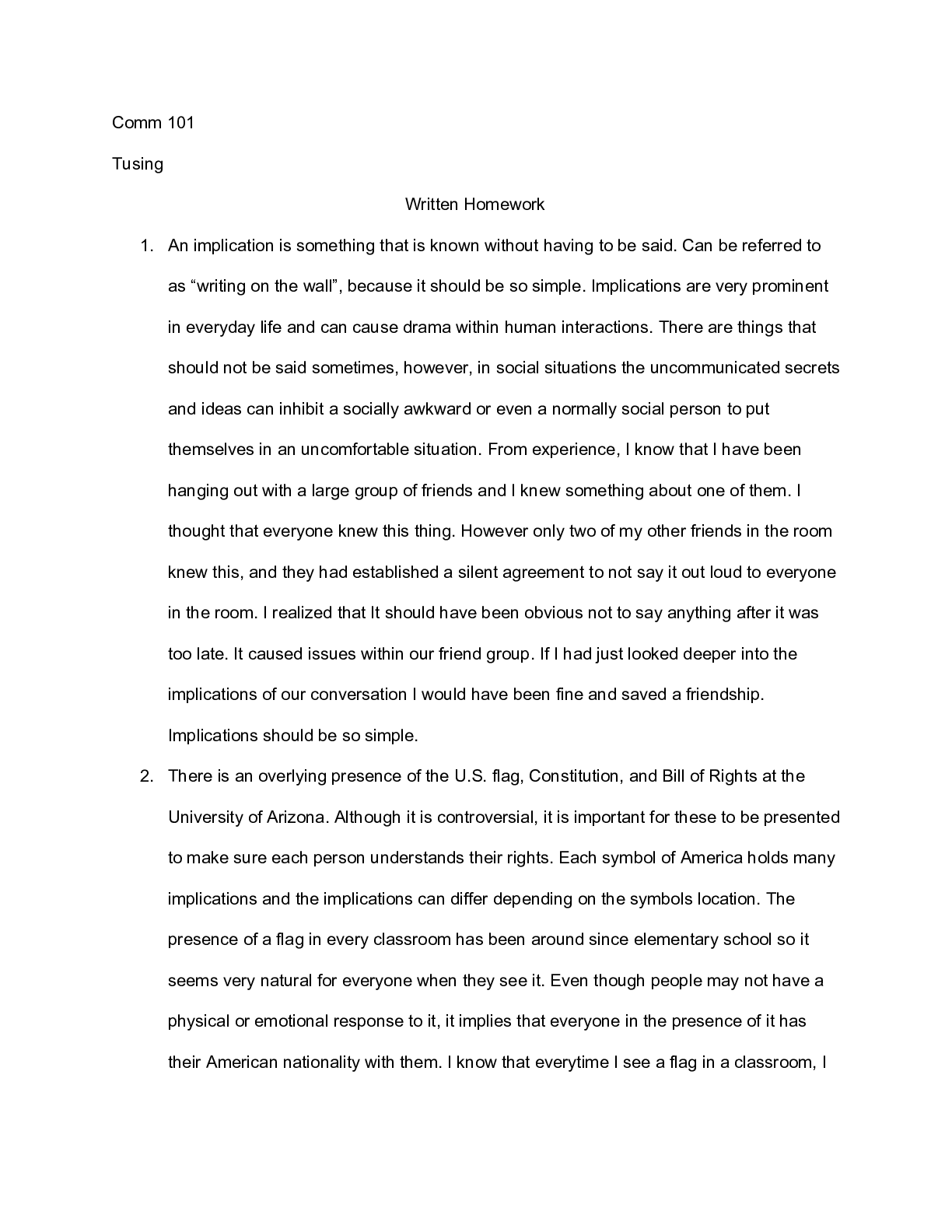 Communication > ESSAY > Essay > University Of Arizona - COMM 101 Comm Written HW #1 (All)