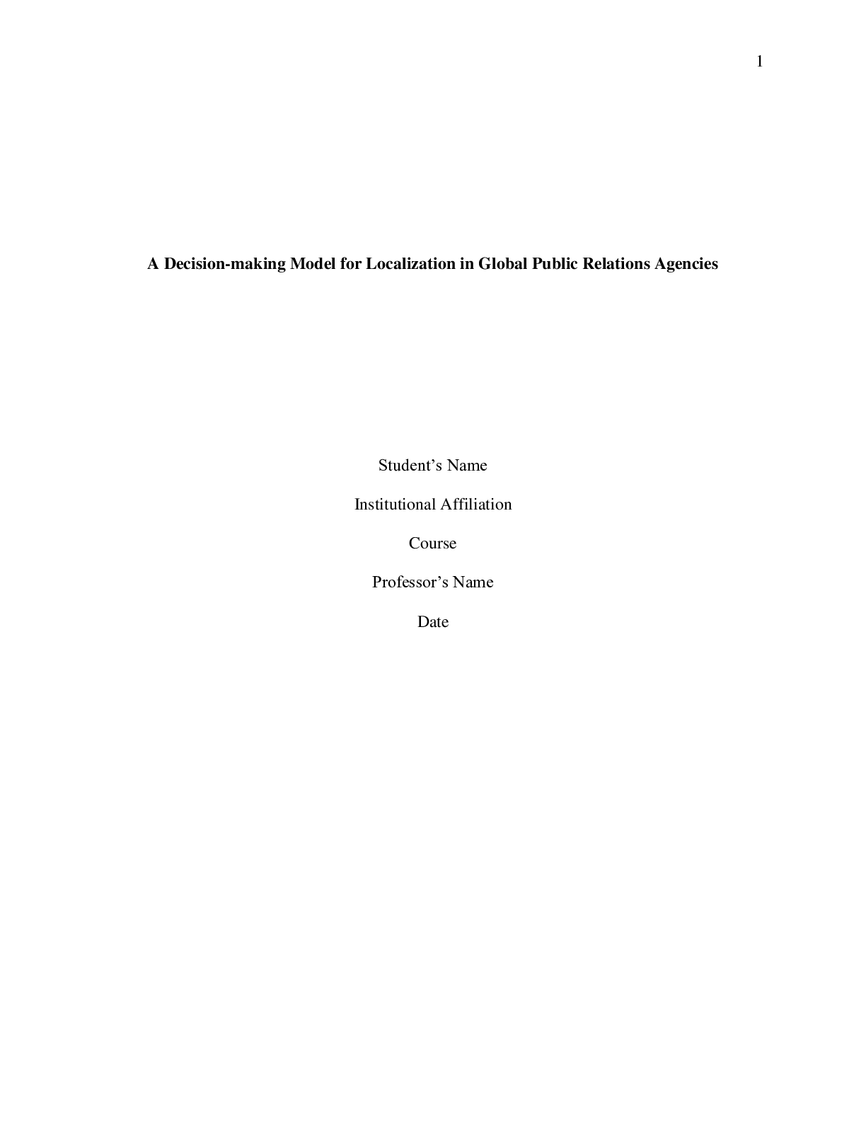 Communication > ESSAY > A Decision-making Model for Localization in Global Public Relations Agencies (All)