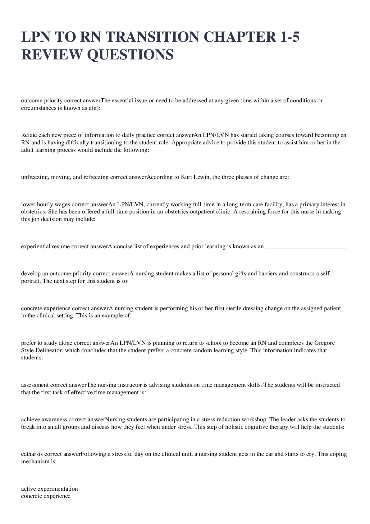 Communication > EXAM > LPN TO RN TRANSITION CHAPTER 1-5 REVIEW QUESTIONS LATEST 2022 (All)